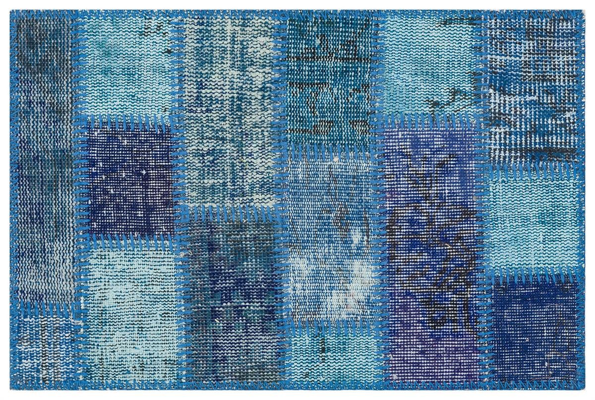 Gerçek El Dokuma Mavi Rengi Taşli Desen Patchwork Paspas-50x80 (PS-2014)