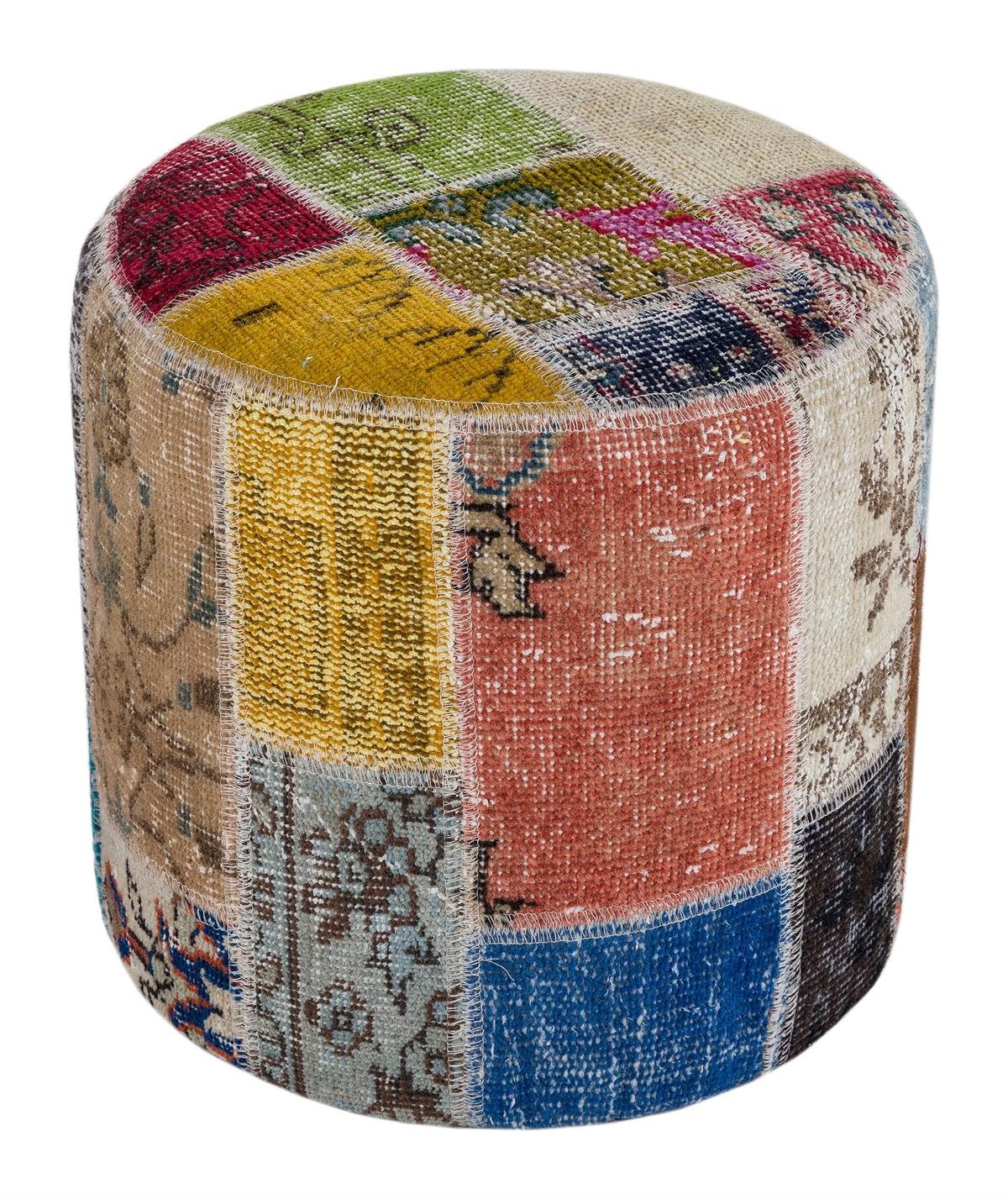 GERÇEK EL DOKUMA MULTİ RENGİ PATCHWORK YUVARLAK PUF (PF-6102)