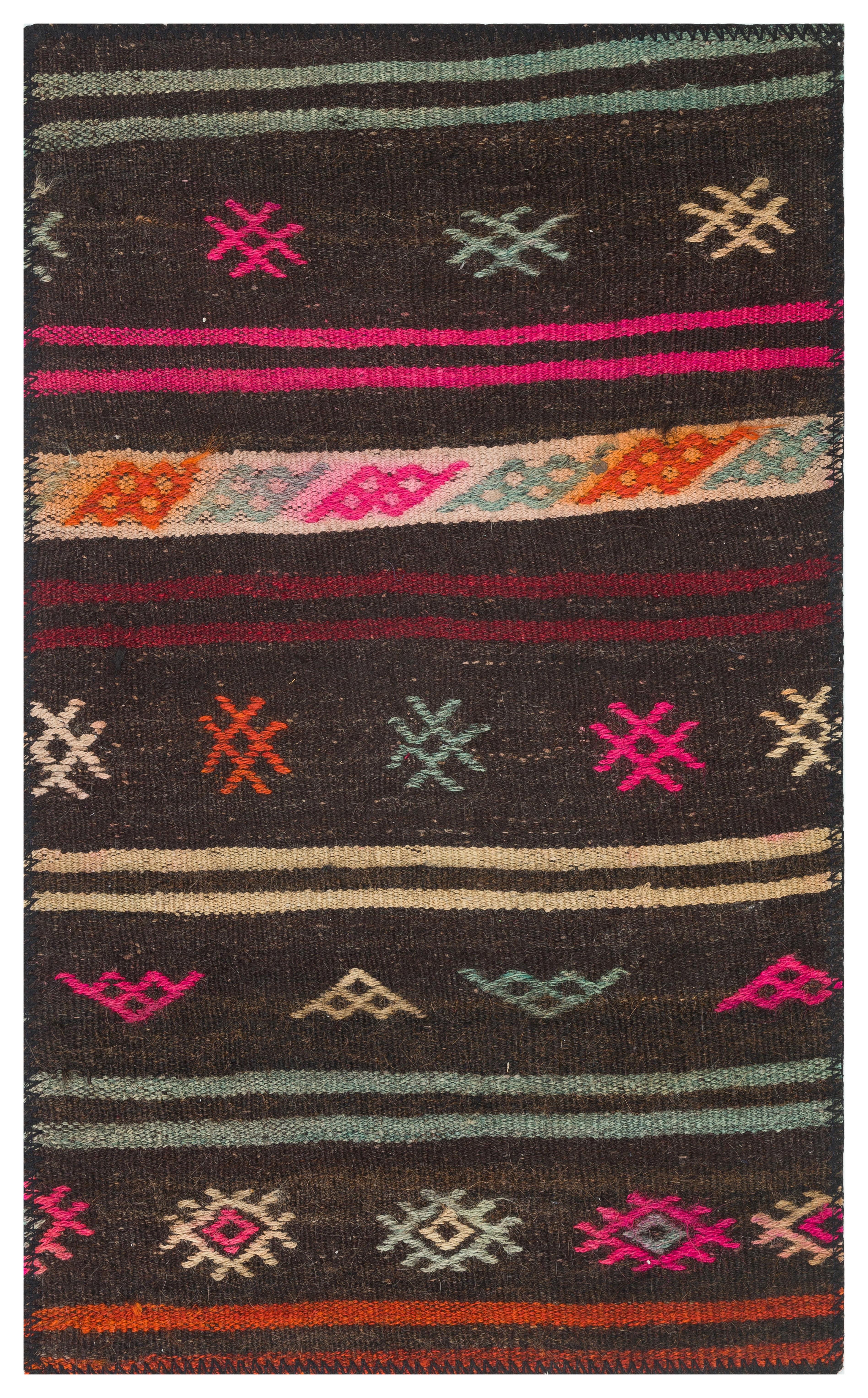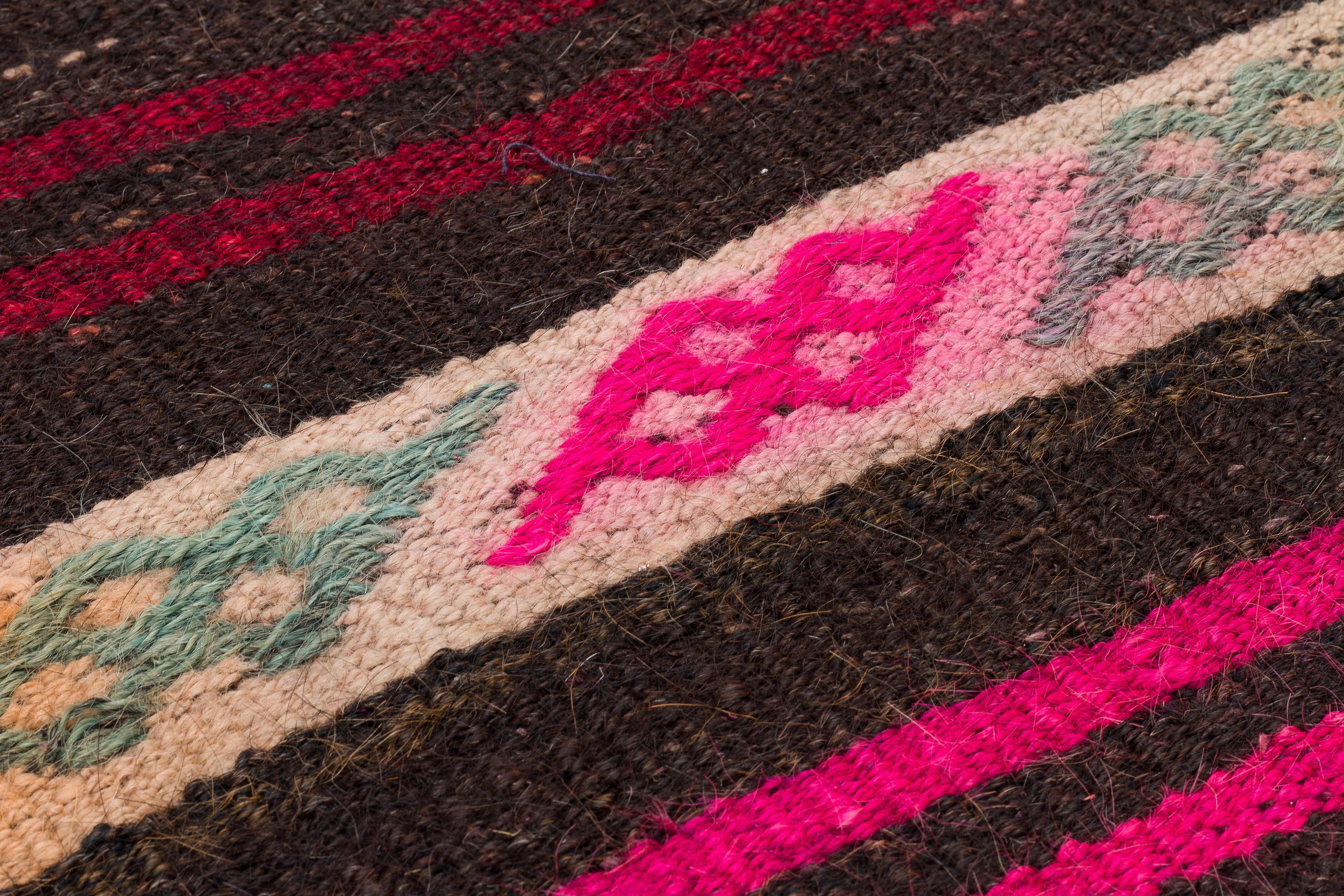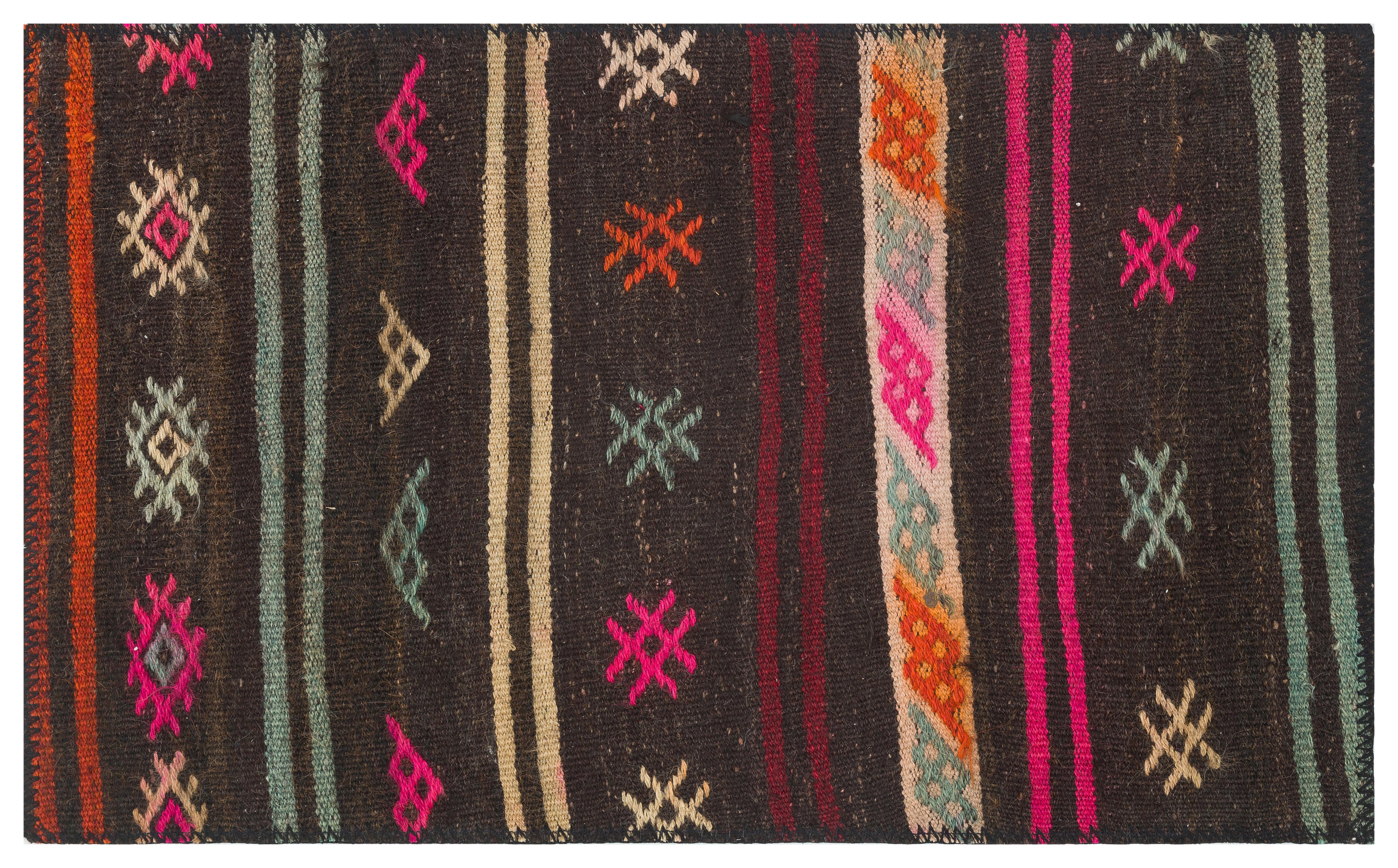 GERÇEK EL DOKUMA RENKLİ ÇİZGİLİ SİYAH KİLİM PASPAS