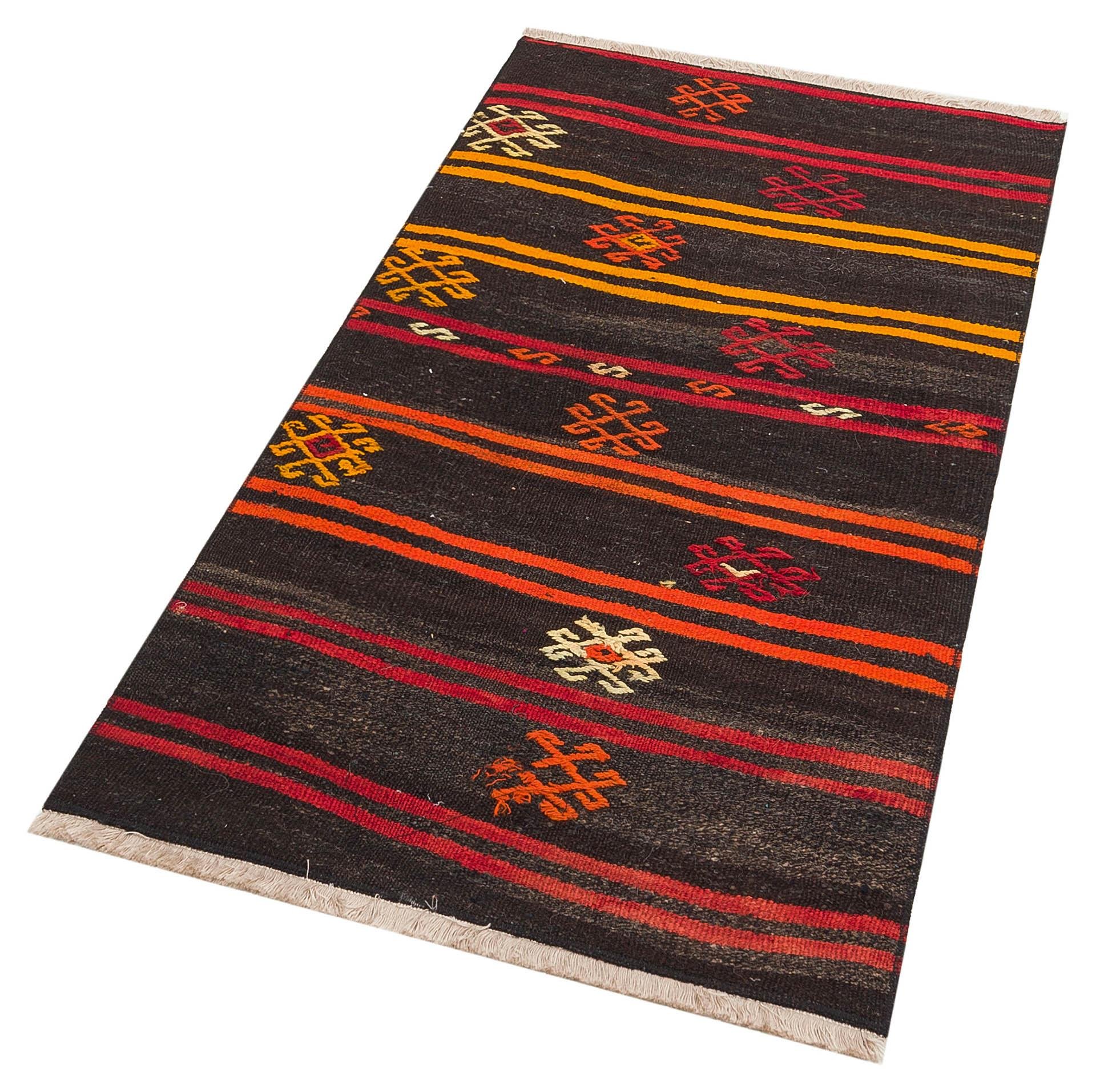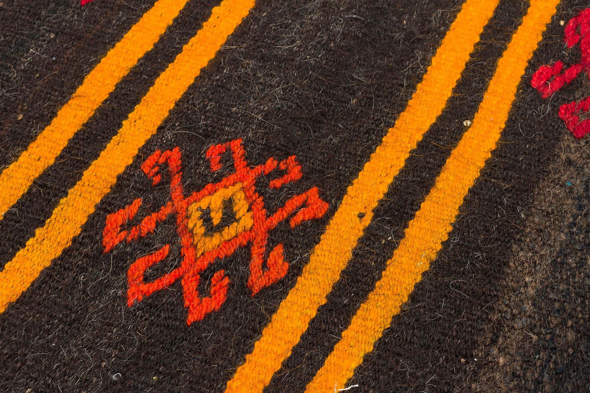 GERÇEK EL DOKUMA SARI KIRIMIZI RENGİ ÇİÇEKLİ DESEN YÜN KİLİM (KL-11918)
