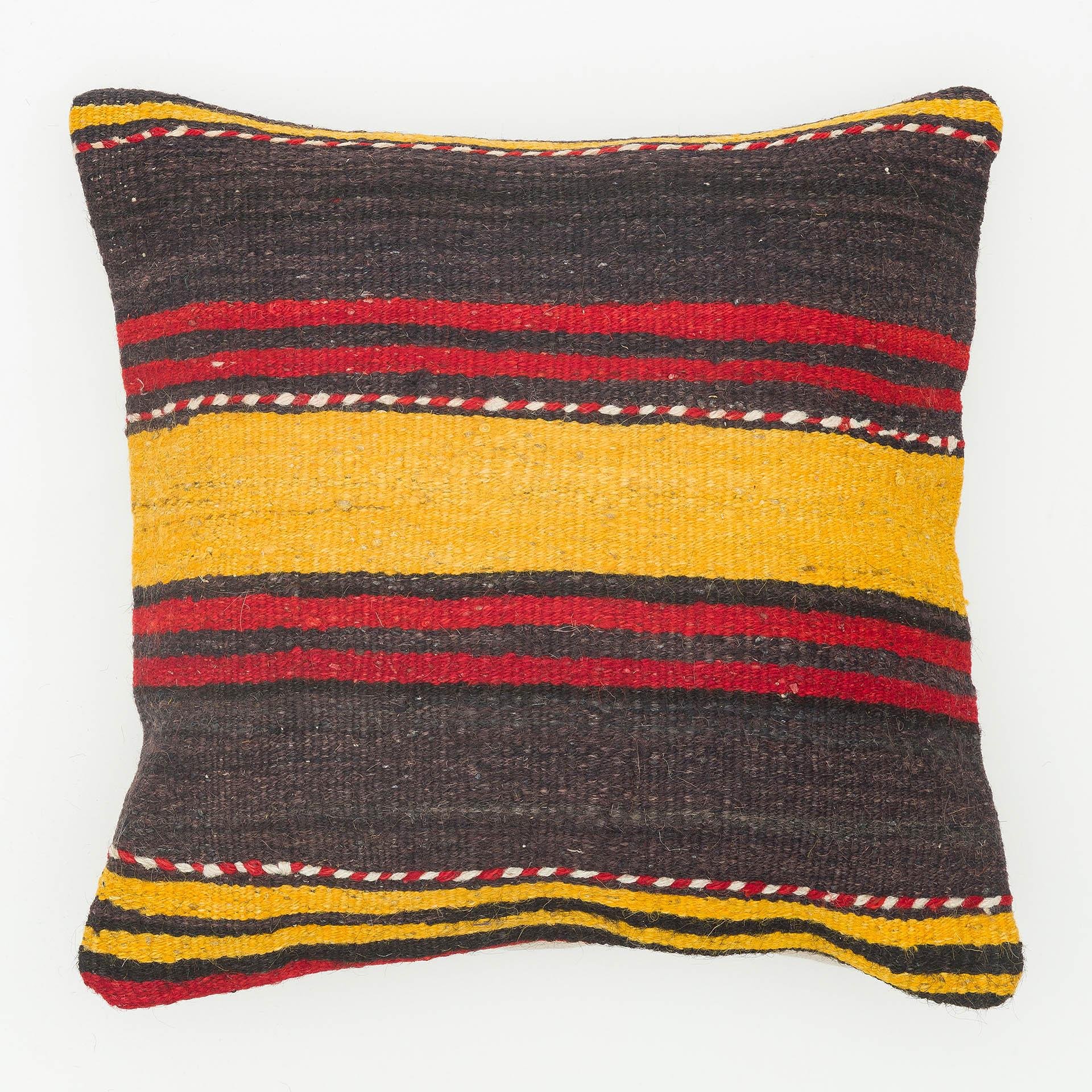 GERÇEK EL DOKUMA SARİ KIRMIZI  RENGİ ÇAPUT PALA KİLİM YASTIK KILIFI