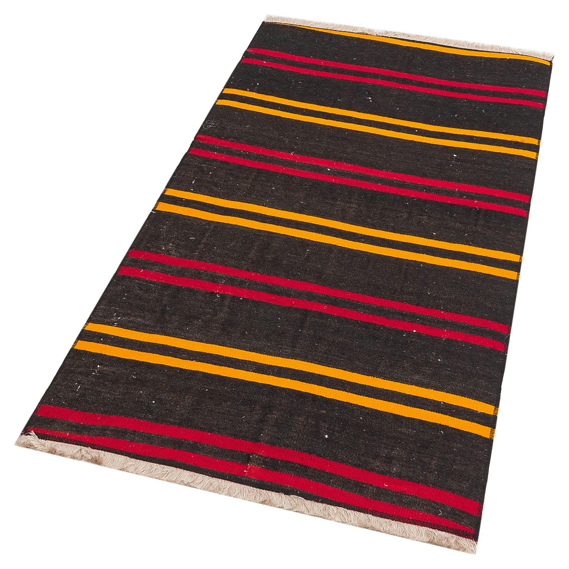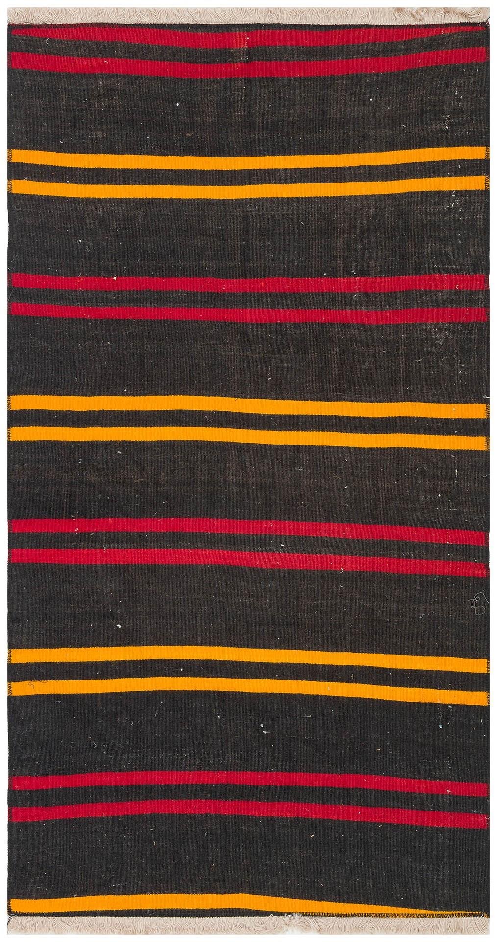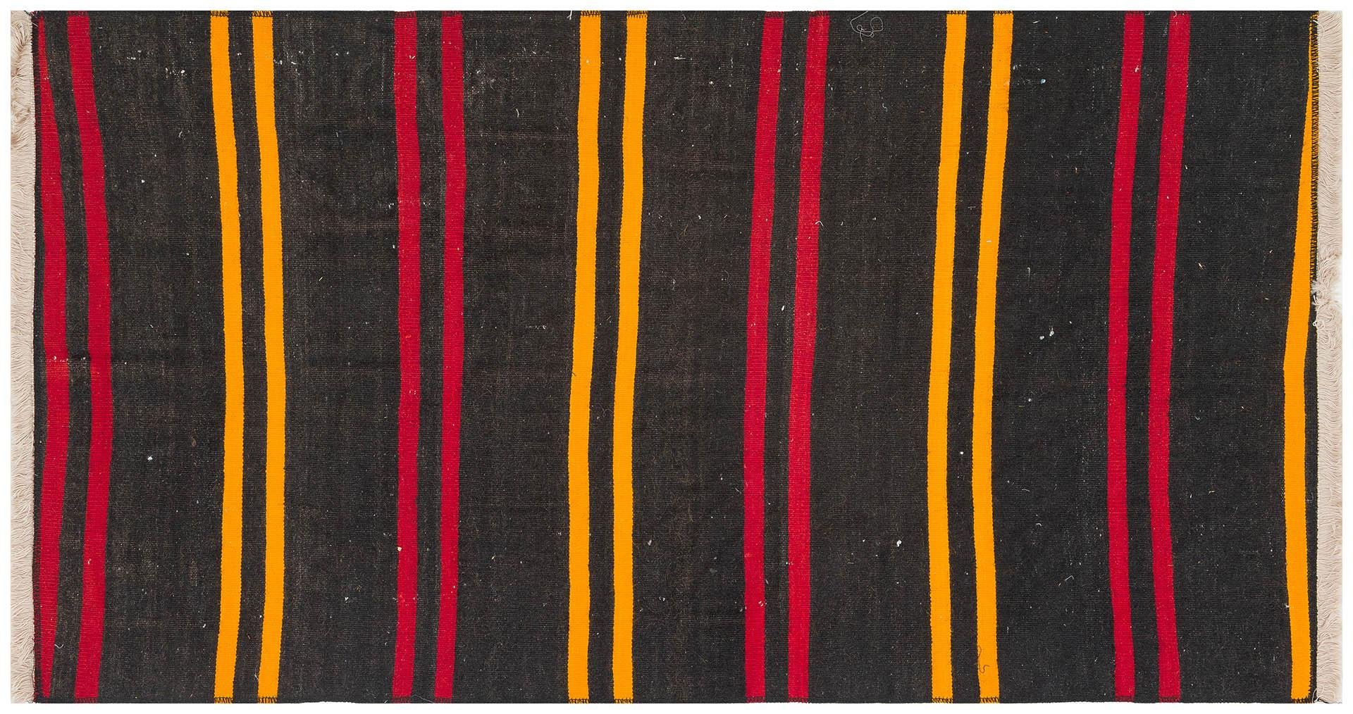 GERÇEK EL DOKUMA SARİ KIRMIZI RENGİ ÇİZGİLİ DESEN KİLİM (KL-11759)