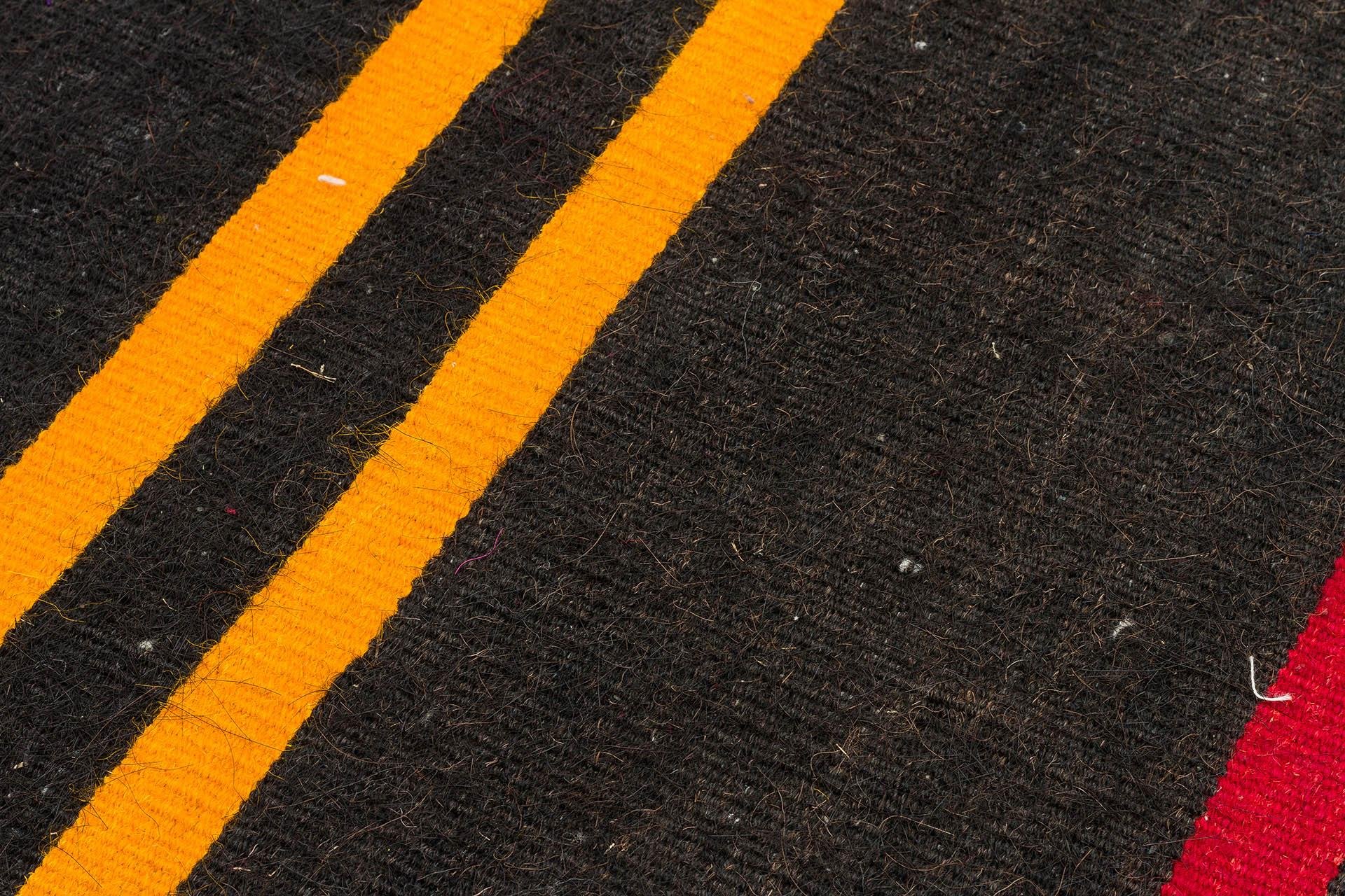 GERÇEK EL DOKUMA SARİ KIRMIZI RENGİ ÇİZGİLİ DESEN KİLİM