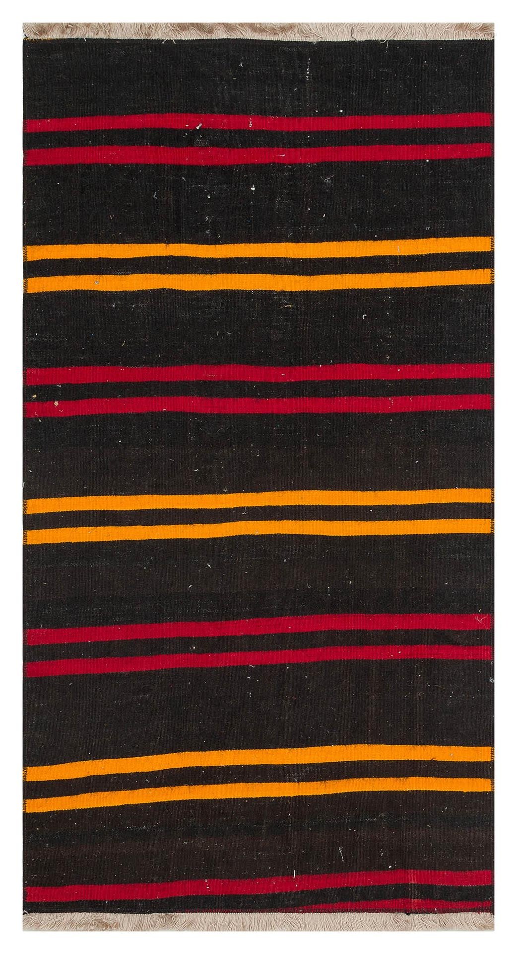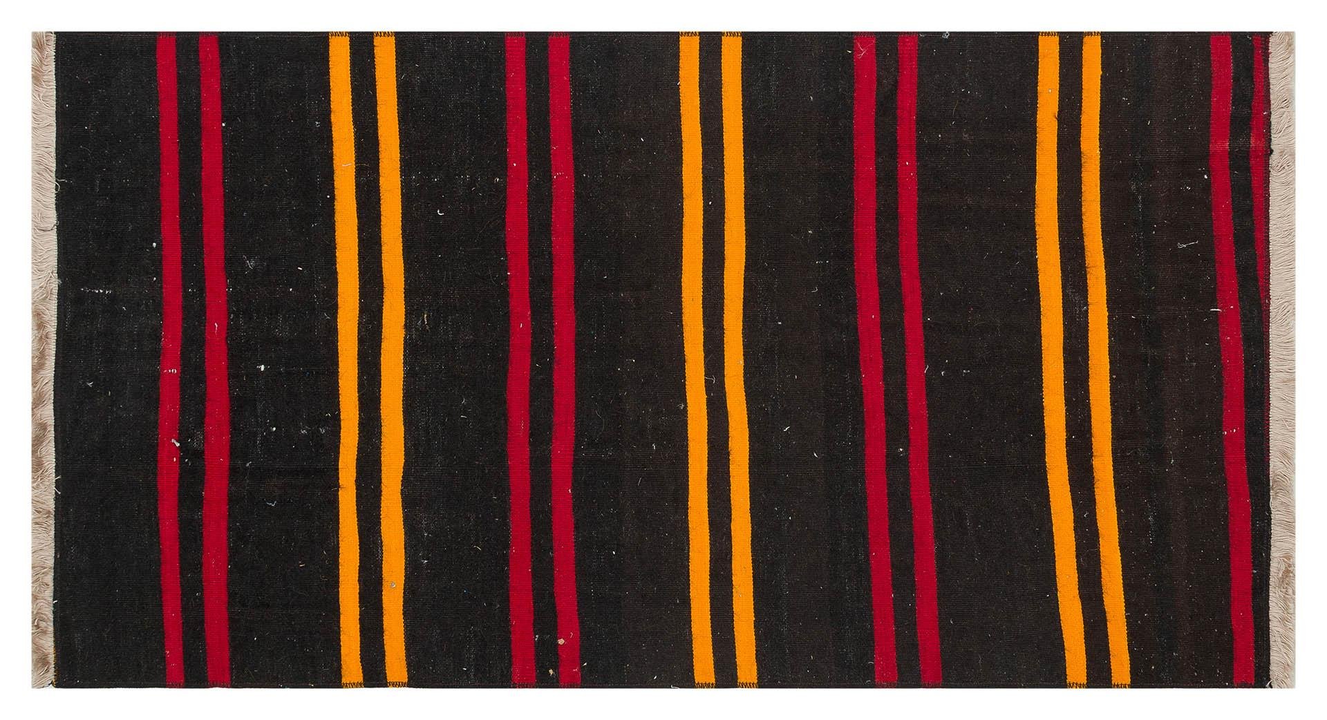 GERÇEK EL DOKUMA SARİ KIRMIZI RENGİ ÇİZGİLİ DESEN KİLİM (KL-13051)