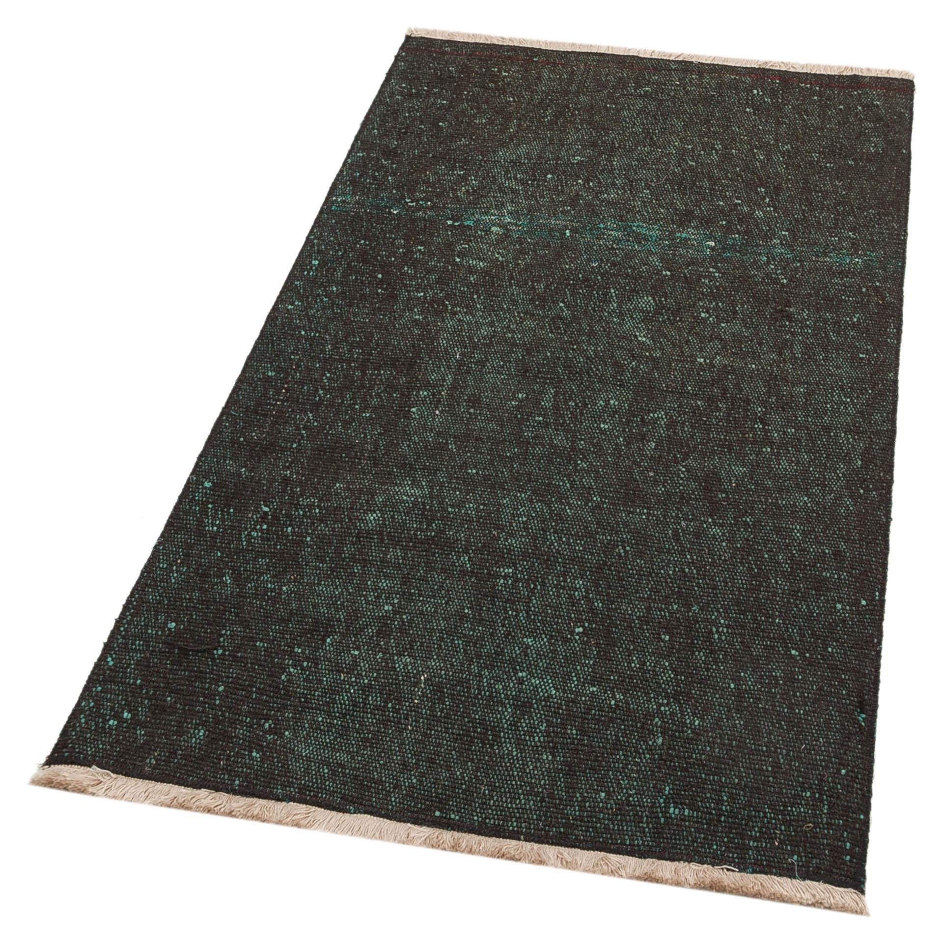 GERÇEK EL DOKUMA SİYAH RENGİ DESENSİZ KEÇİ YÜN KİLİM (KL-13042)