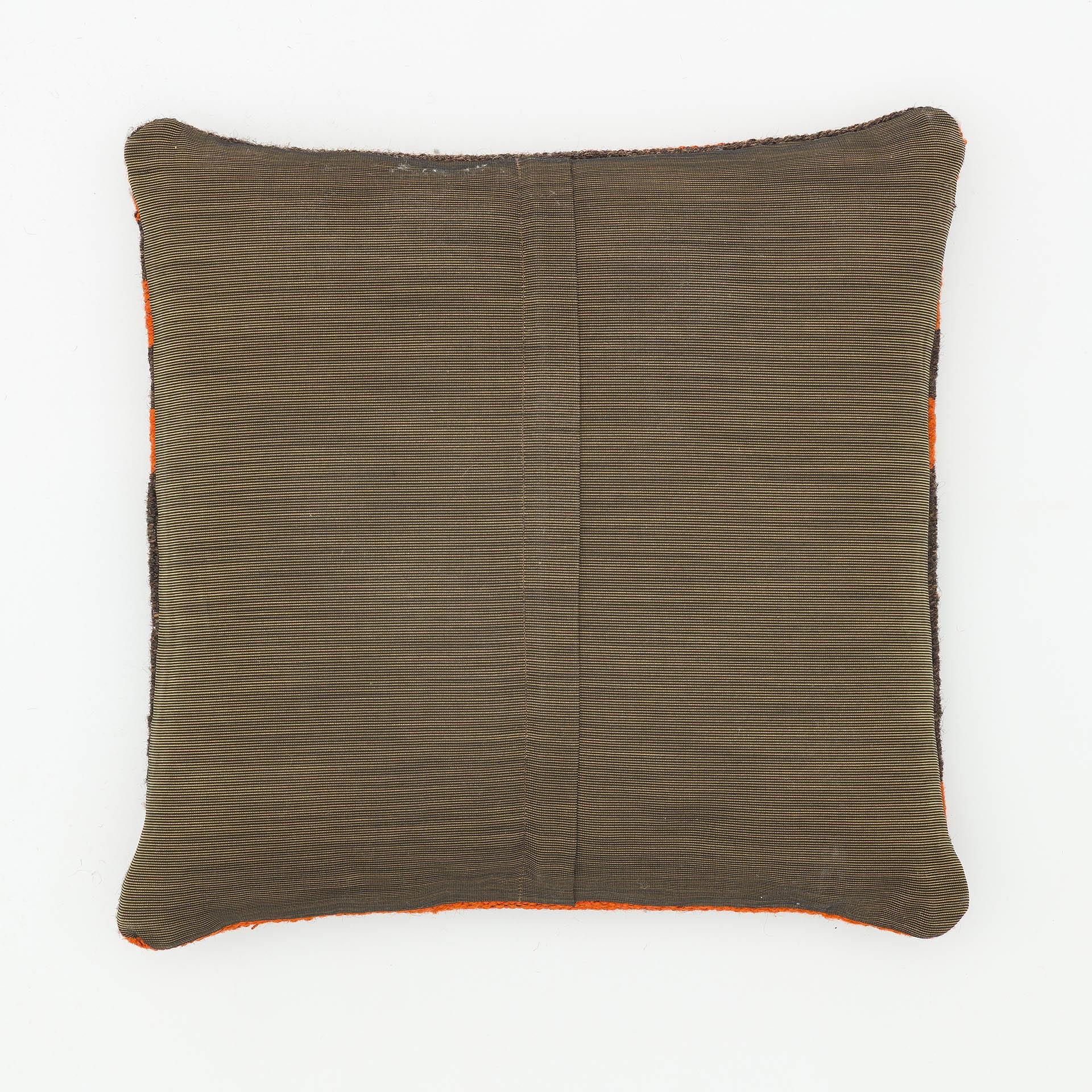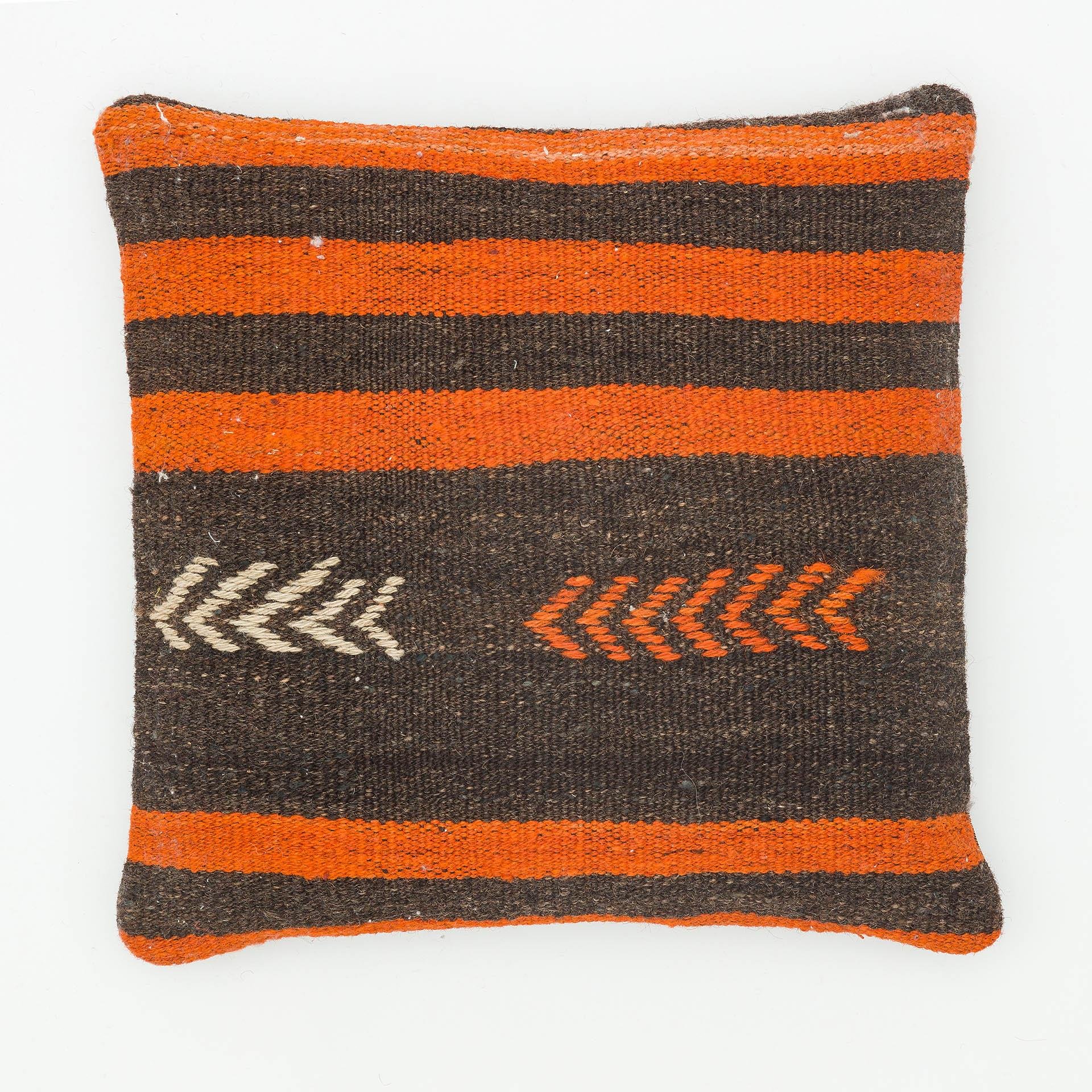 GERÇEK EL DOKUMA SİYAH TURUNCU RENGİ ÇİZGİLİ KEÇİ KİLİ YASTIK KILIFI (KR-13545)