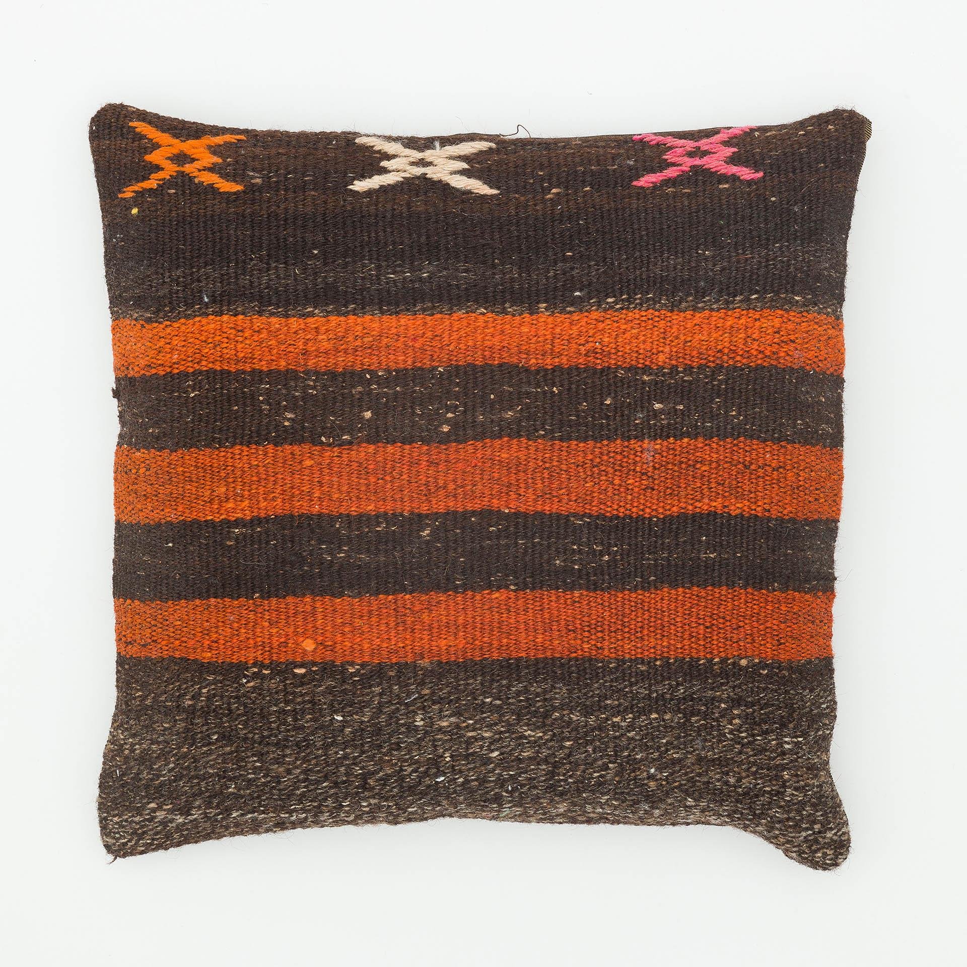 GERÇEK EL DOKUMA TURUNCU RENGİ DESENLİ ÇAPUT PALA KİLİM YASTIK KILIFI (KR-13557)
