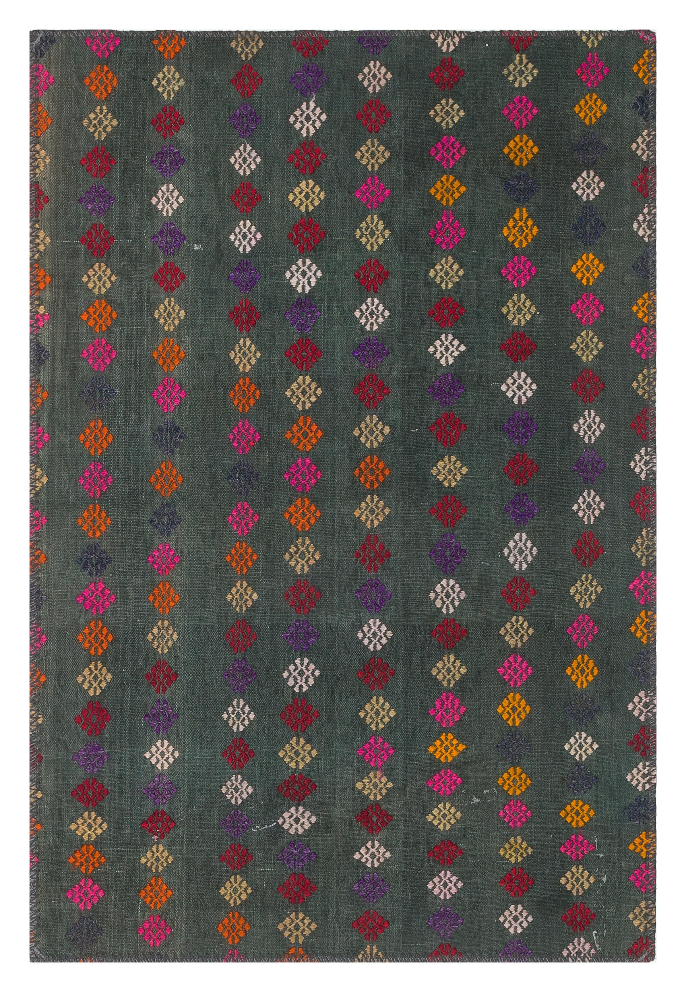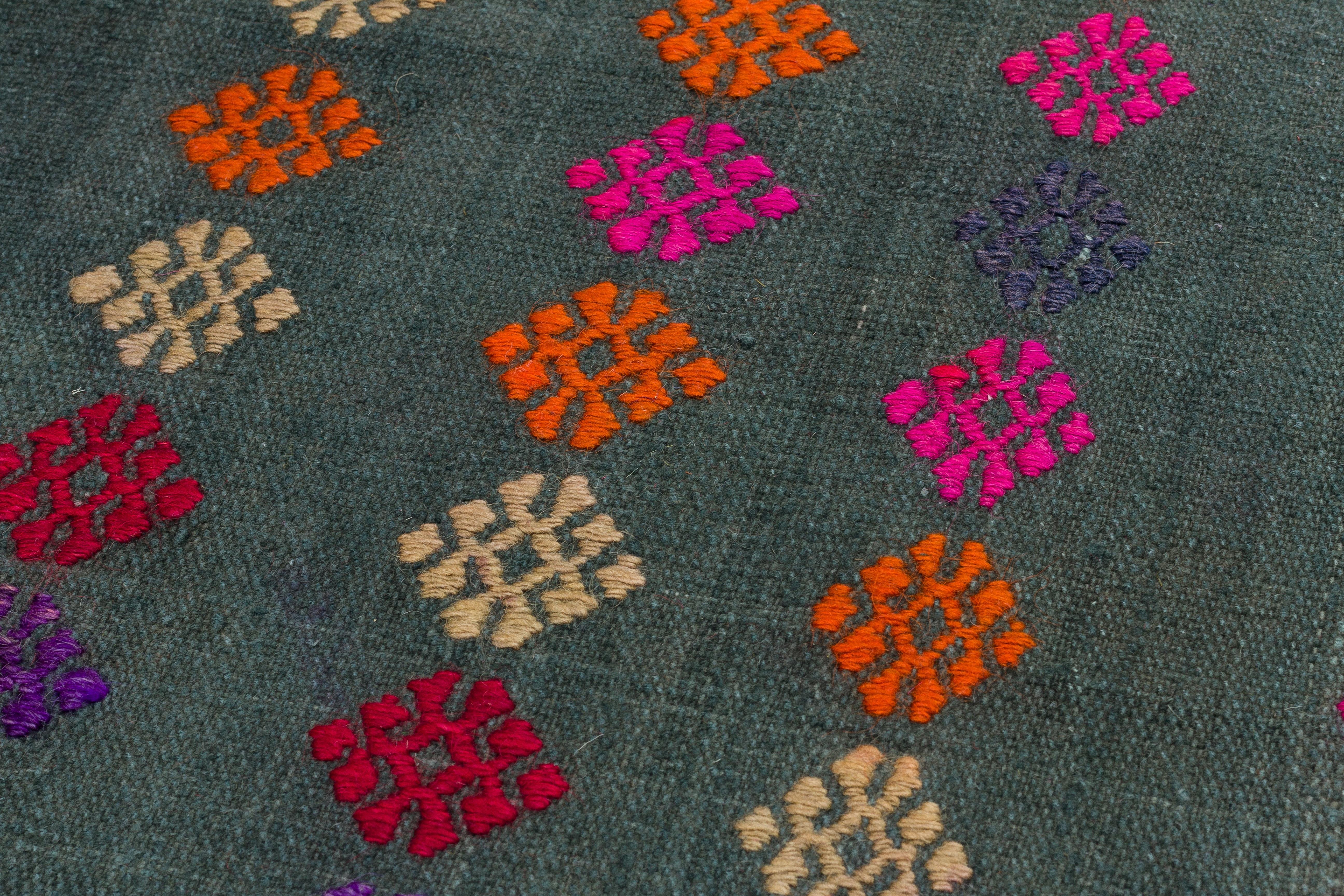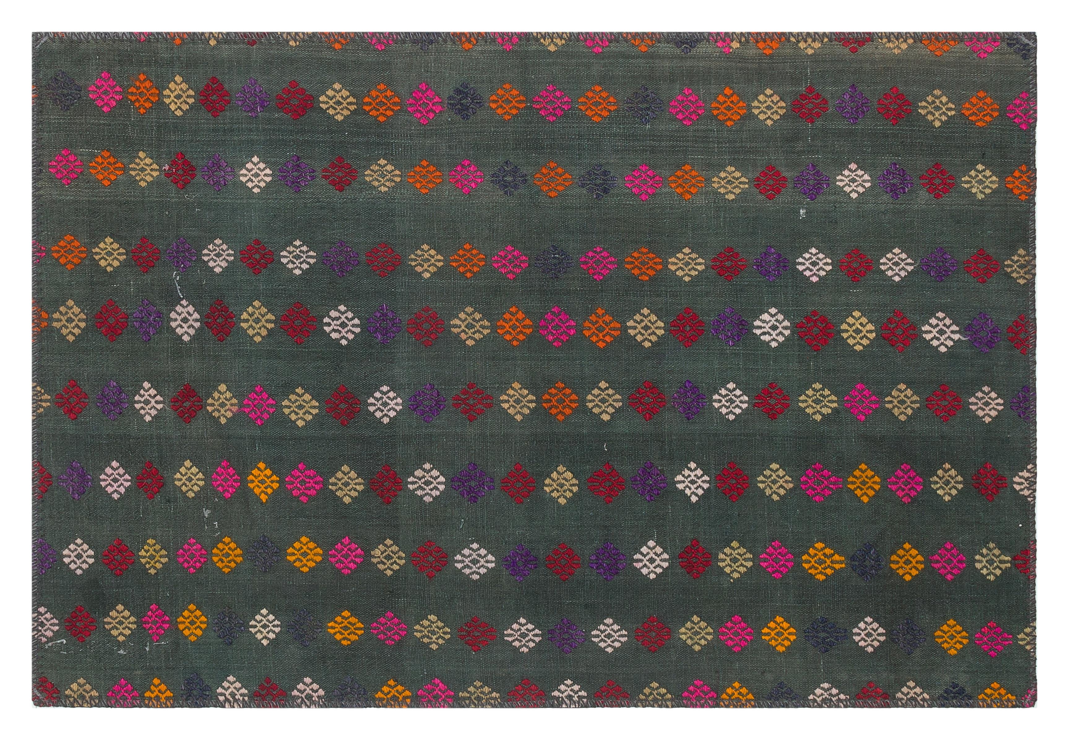 GERÇEK EL DOKUMA YEŞİL ÇİÇEKLİ DESEN KİLİM PASPAS