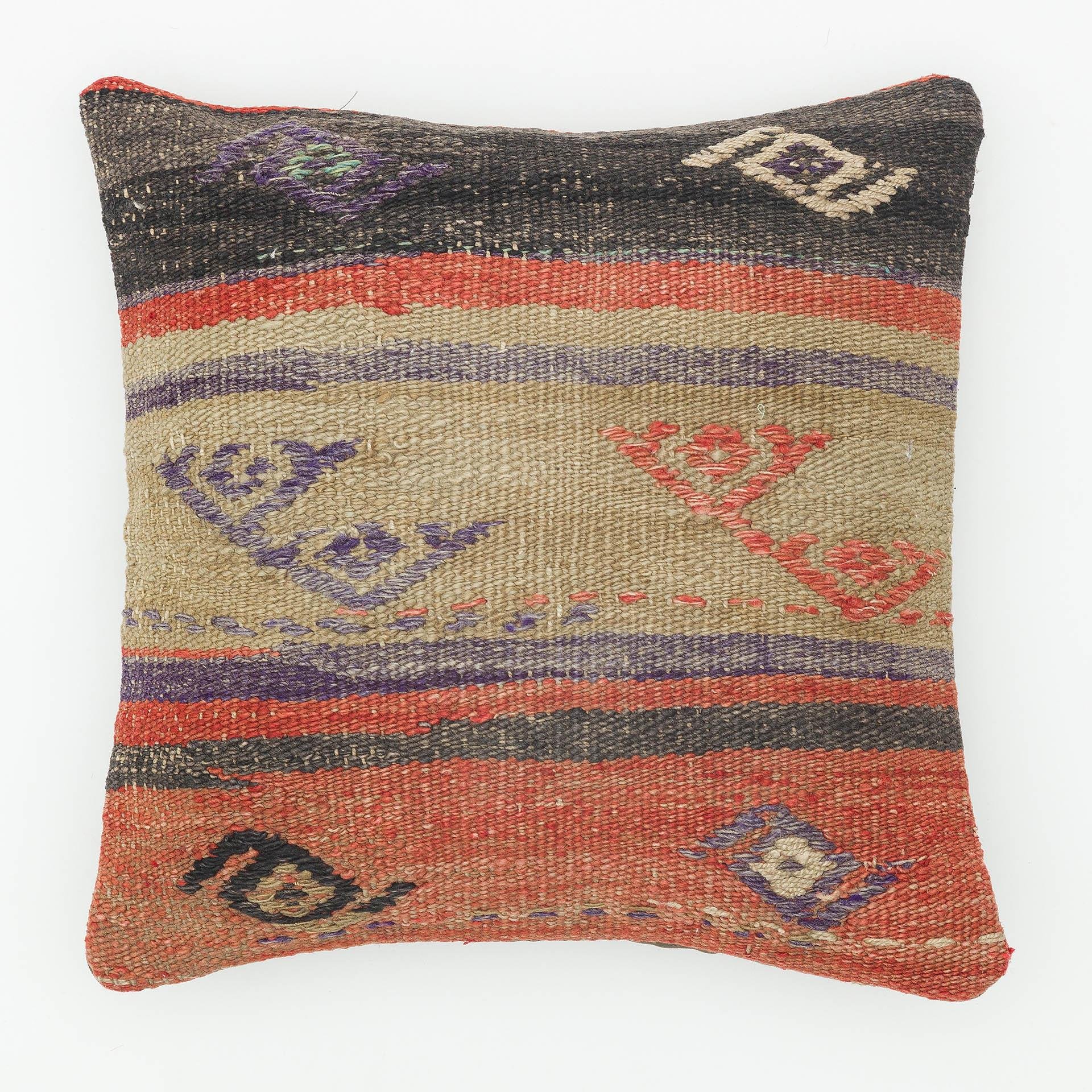 GERÇEK EL DÜĞÜMLÜ RENKLİ ÇAPUT PALA KİLİM YASTIK KILIFI (KR-13604)