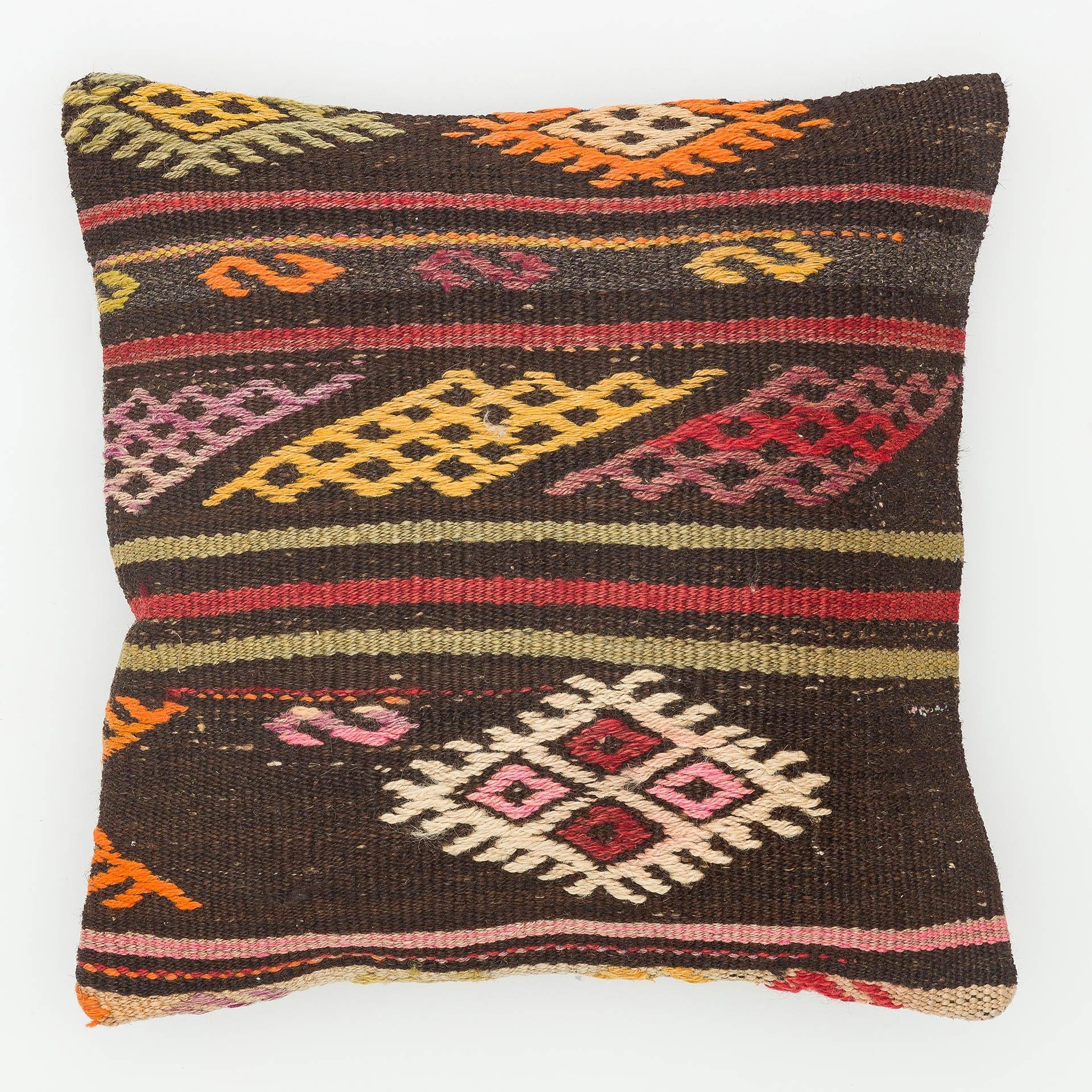 GERÇEK EL DÜĞÜMLÜ RENKLİ ÇAPUT PALA KİLİM YASTIK KILIFI (KR-13732)