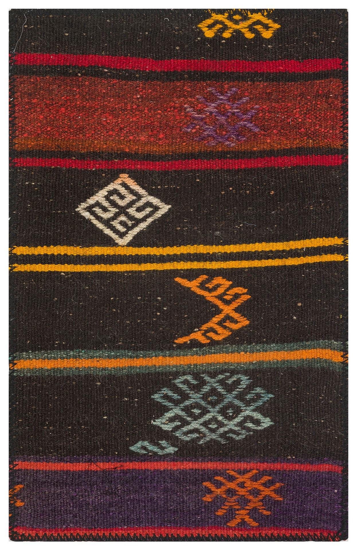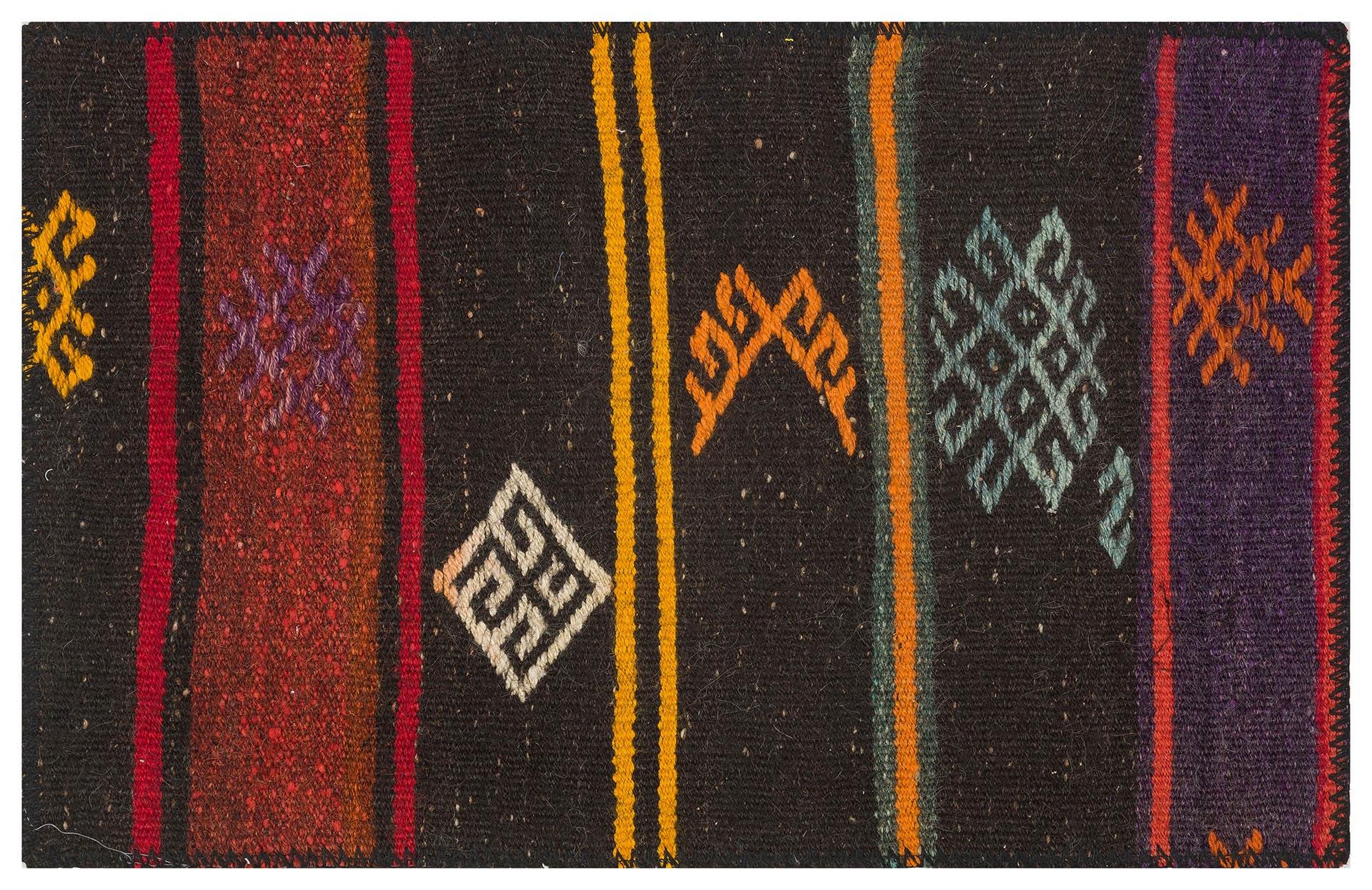 GERÇEK EL YAPIMI SİYAH RENGİ KEÇİ KILI YÜNLÜ KİLİM PASPAS (PS-2133)