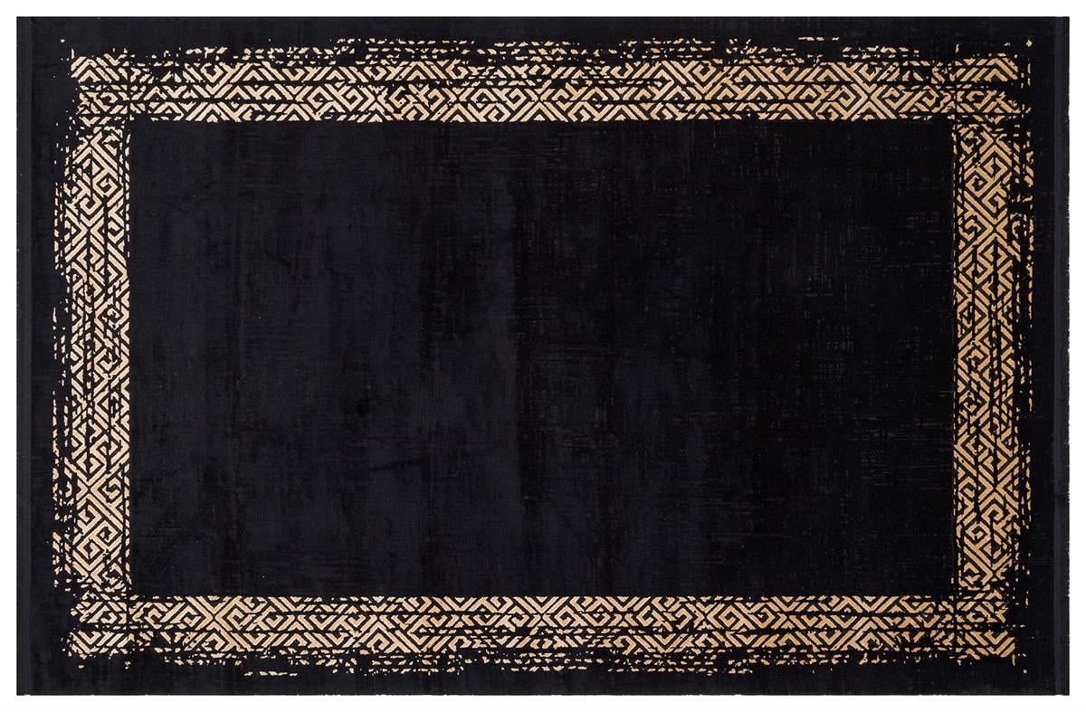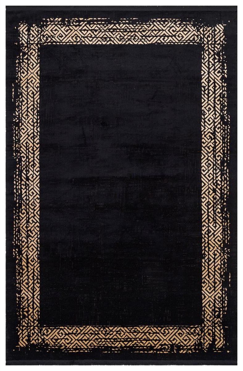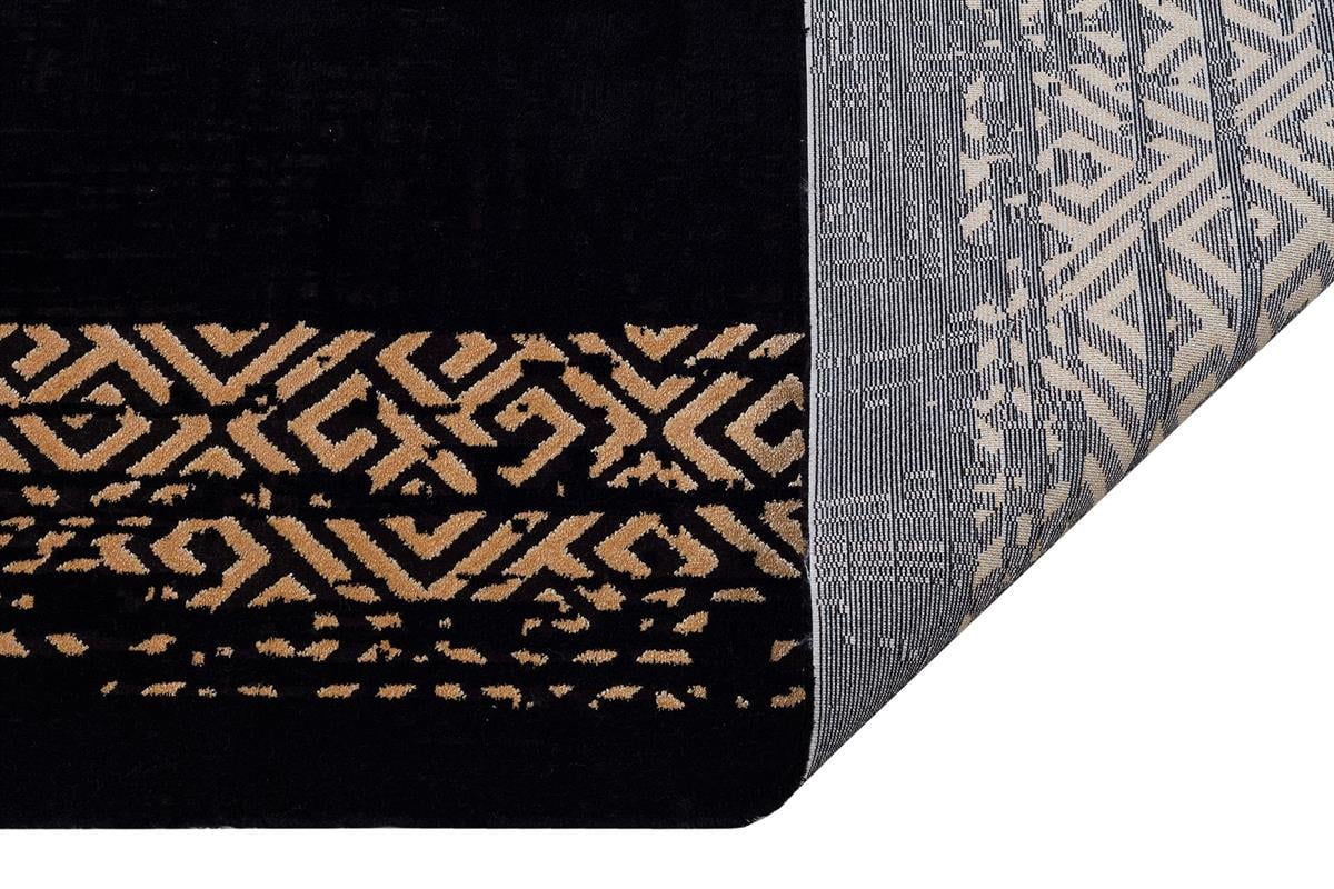 HALICA TENOM SİYAH ALTİN RENGİ ÇİÇEKLİ MODREN BAMBU HALI (14226G)
