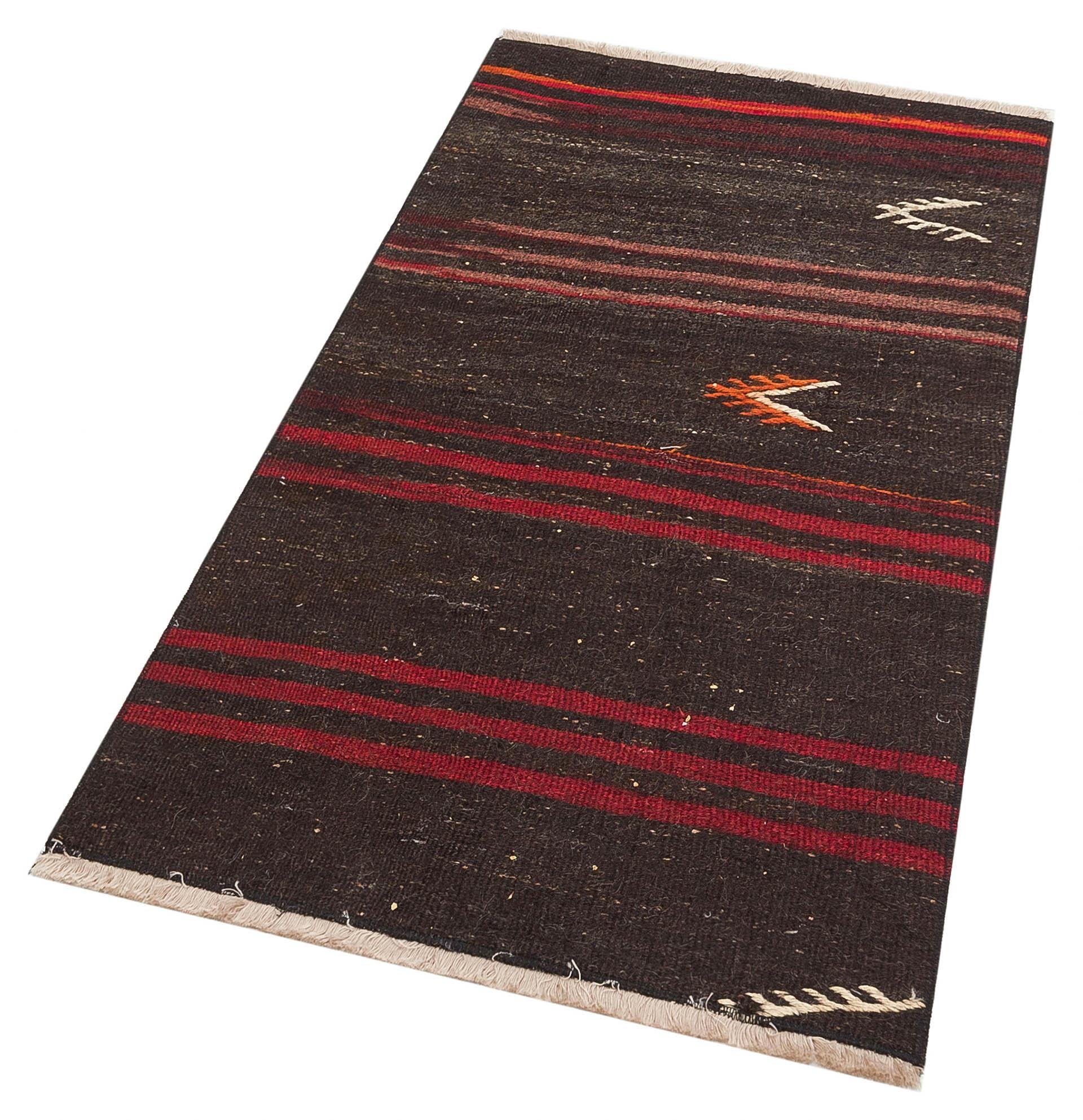 KIRMIZI RENGİ ÇİZGİLİ DESEN EL DOKUMA ANADOLU KİLİM (KL-11912)