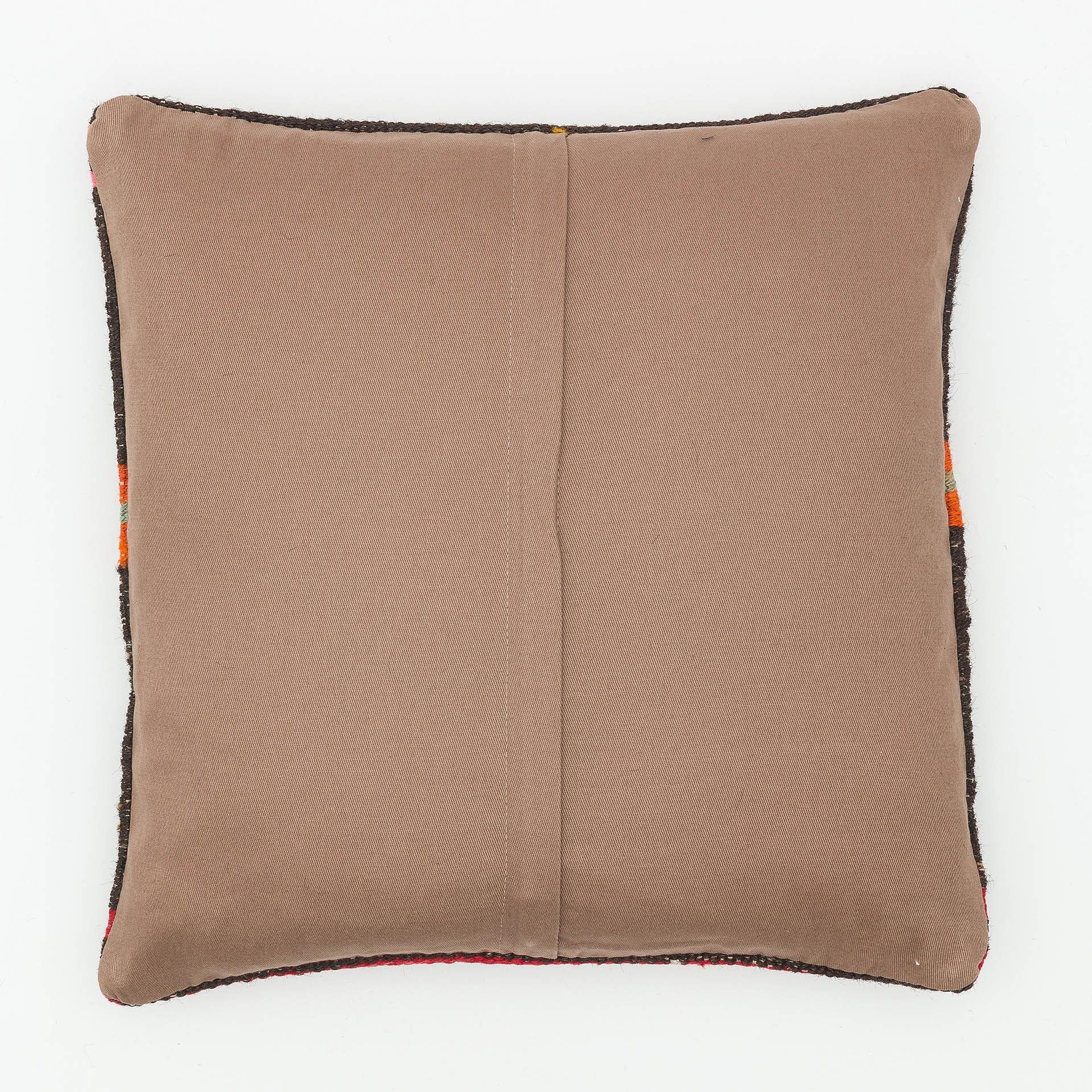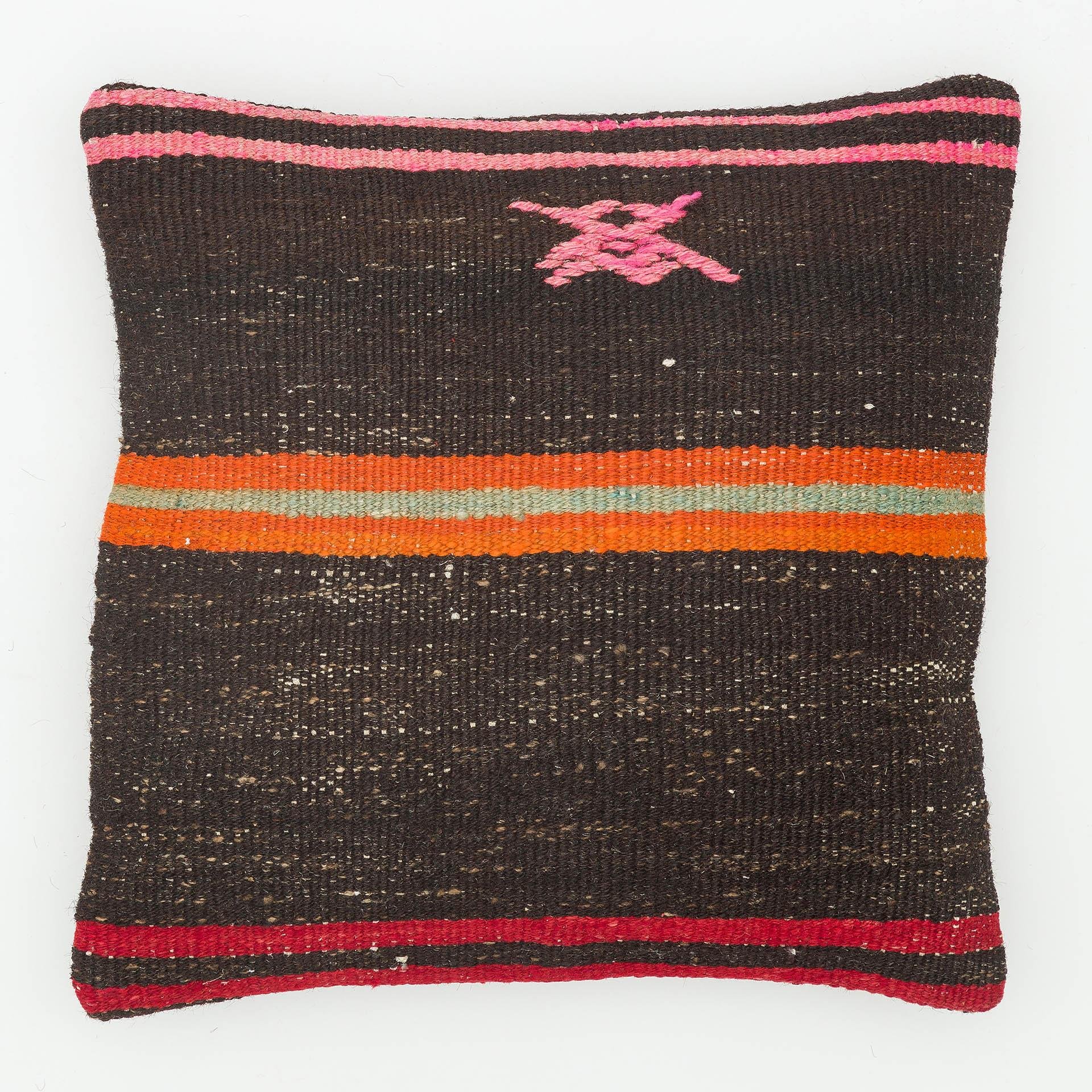 KIRMIZI TURUNCU ÇİZGİLİ SİYAH EL DÜĞÜMLÜ YASTIK KILIFI