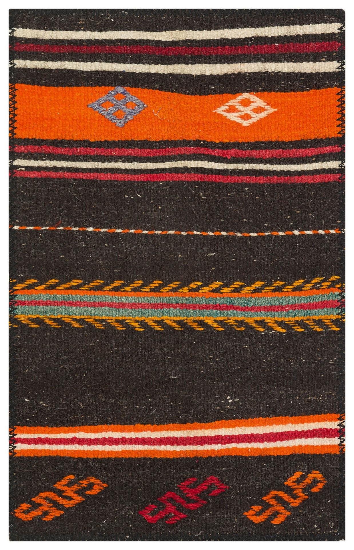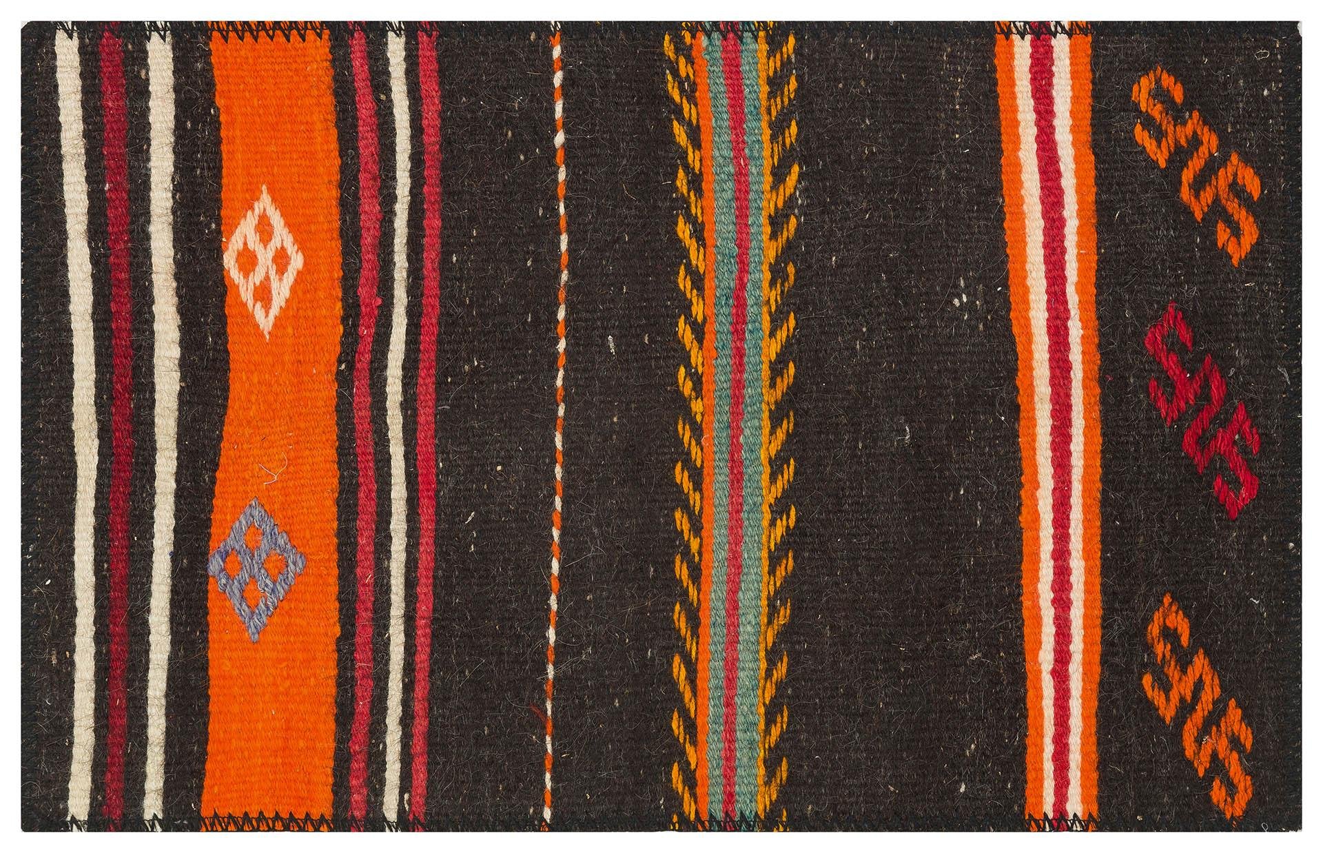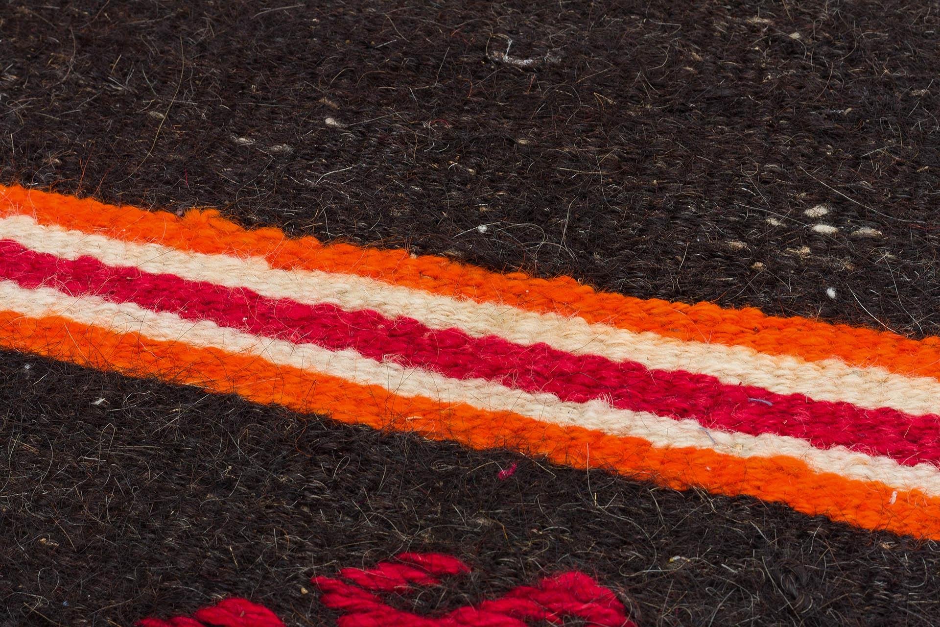 KIRMIZI TURUNCU RENGİ GEOMETRİK DESEN KEÇİ KILI YÜNLÜ KİLİM PASPAS