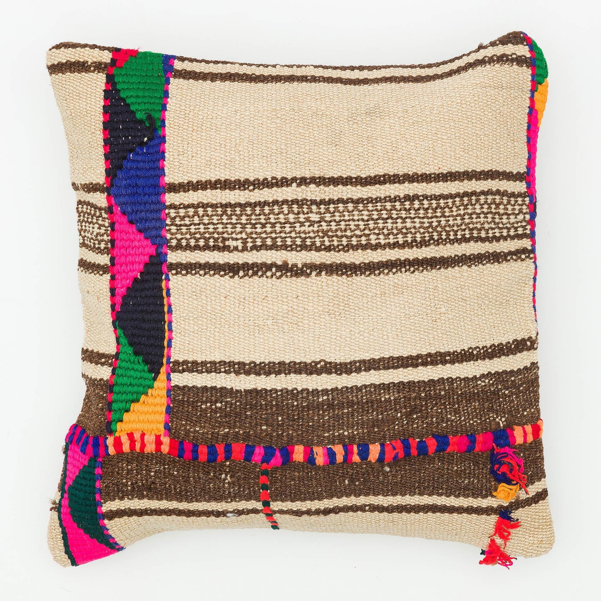 KREM KAHVERENGİ EL DÜĞÜMLÜ KENDİR KİLİM KILIFI (KR-13609)