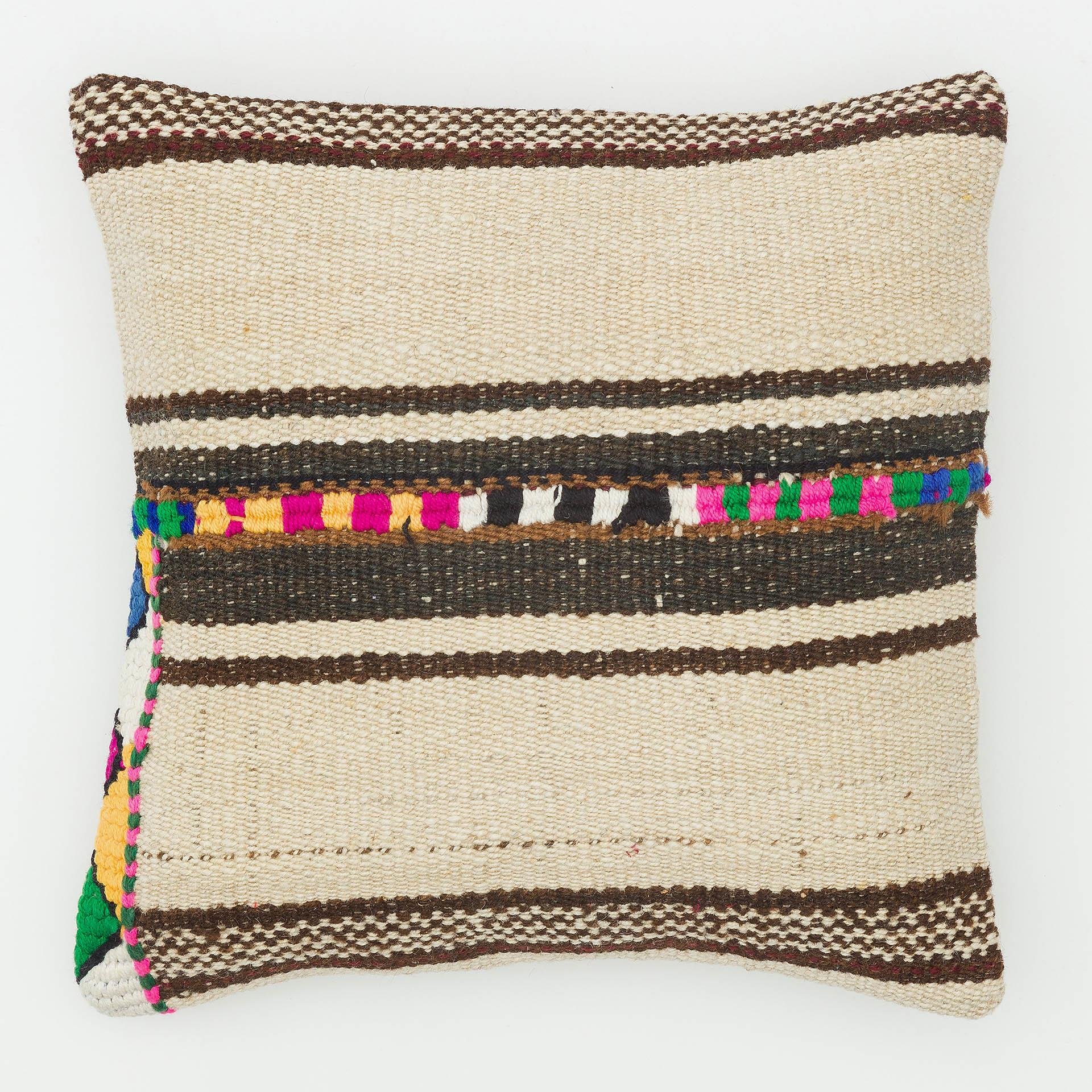 KREM KAHVERENGİ EL DÜĞÜMLÜ KENDİR KİLİM KILIFI (KR-13620)