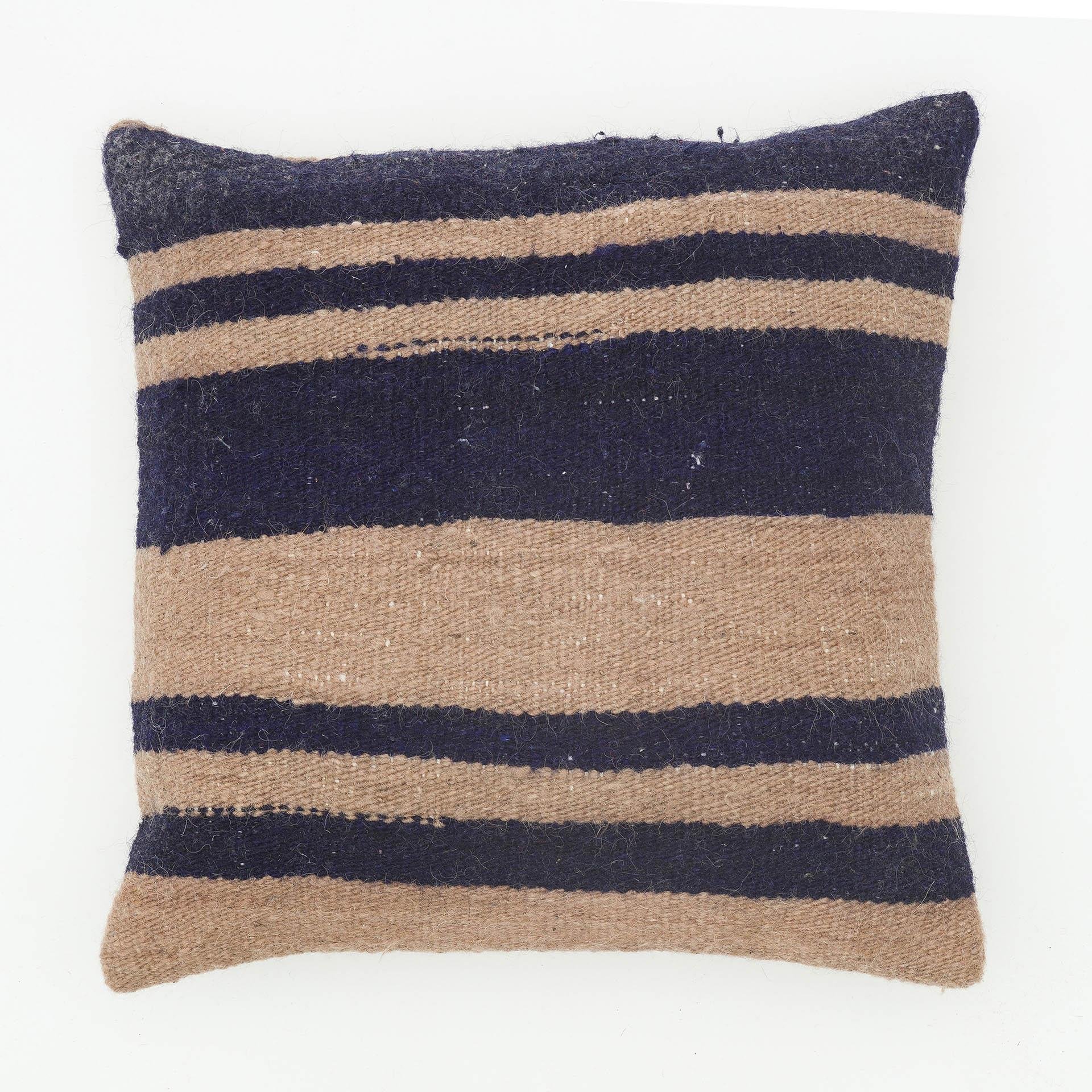 KREM LACİVERT RENGİ EL DOKUMA KEÇİ KİLİM YASTIK KILIFI (KR-13569)
