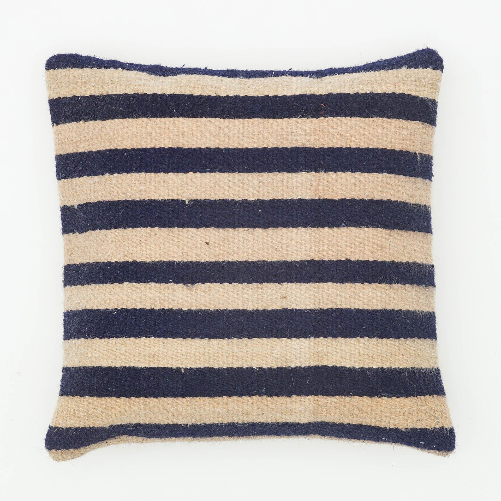 KREM LACİVERT RENGİ EL DOKUMA KEÇİ KİLİM YASTIK KILIFI (KR-13575)
