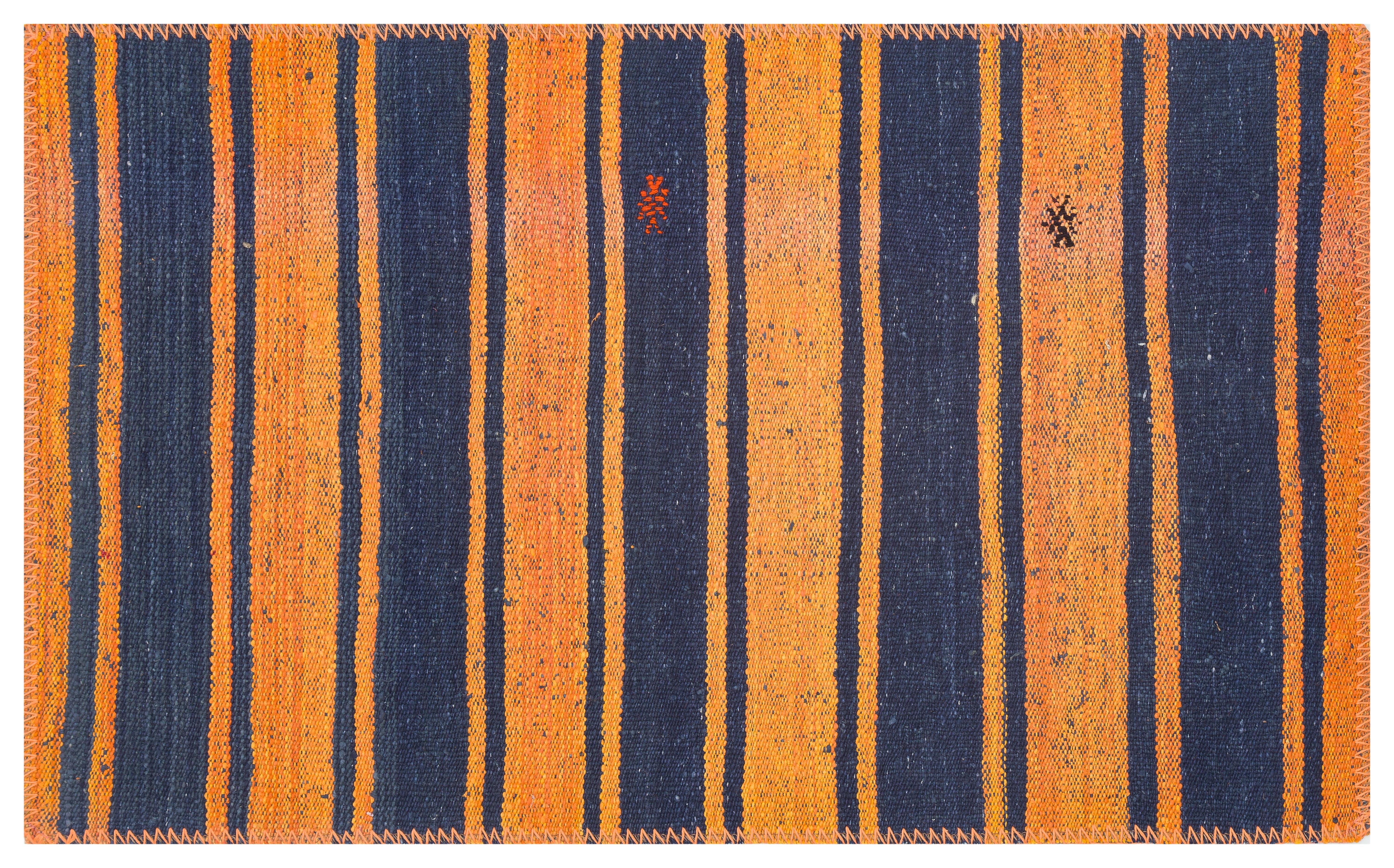 LACİVERT TURUNCU RENGİ KENDİR KİLİM PASPAS