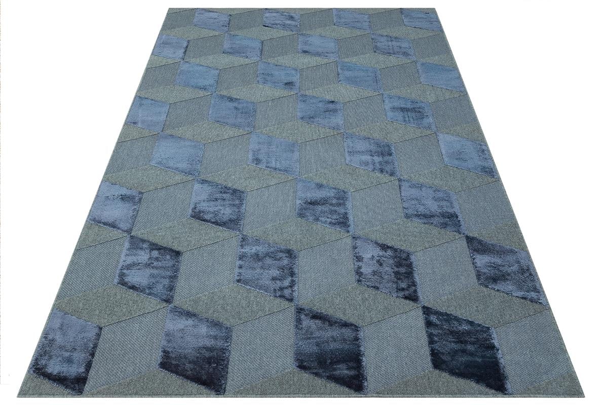 NAVY DYED YÜKSEK ALÇAK DOKULU NATUREL YÜN VE VISKON MODERN DOKUMA HALI (ZNT-05)