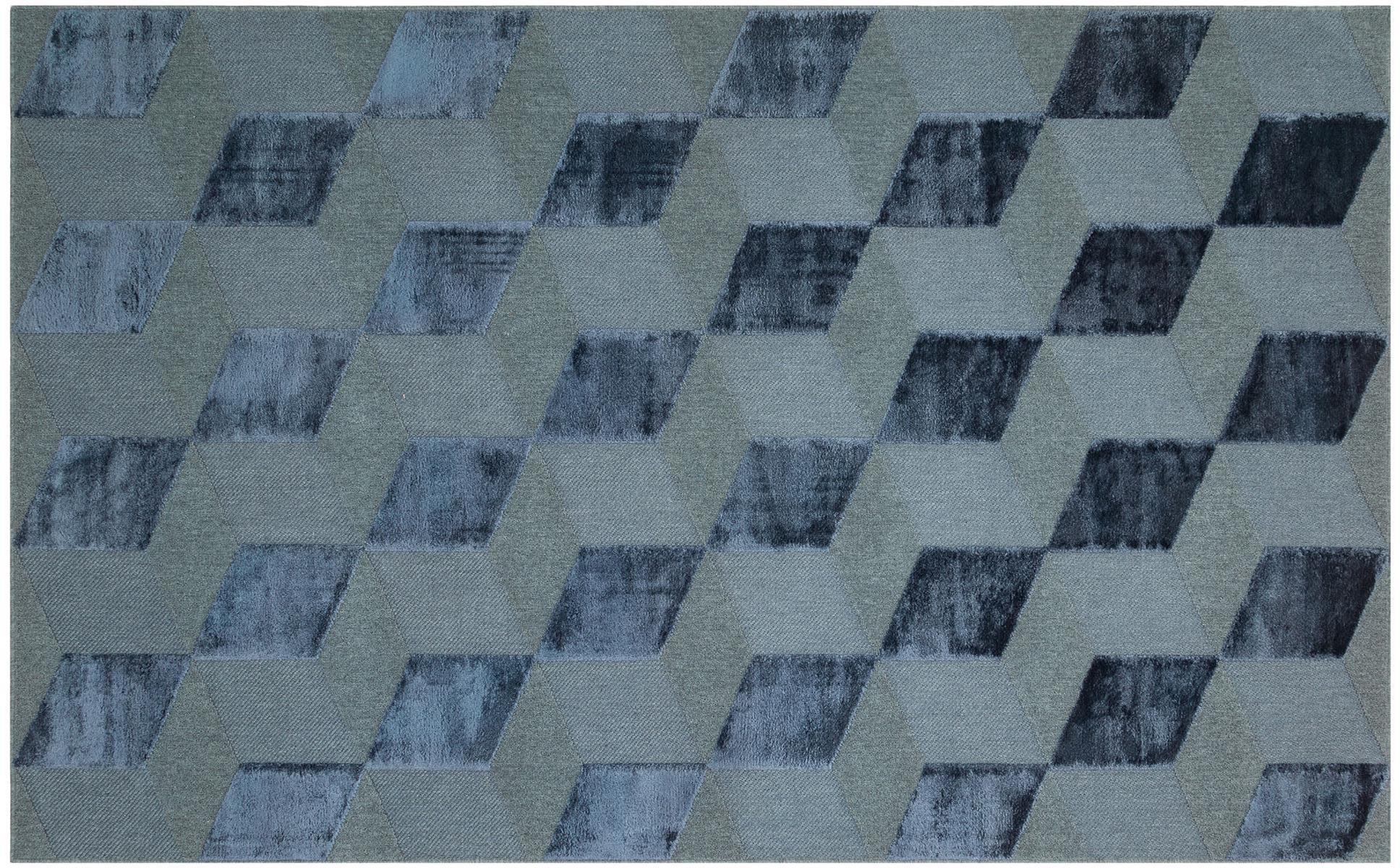 NAVY DYED YÜKSEK ALÇAK DOKULU NATUREL YÜN VE VISKON MODERN DOKUMA HALI