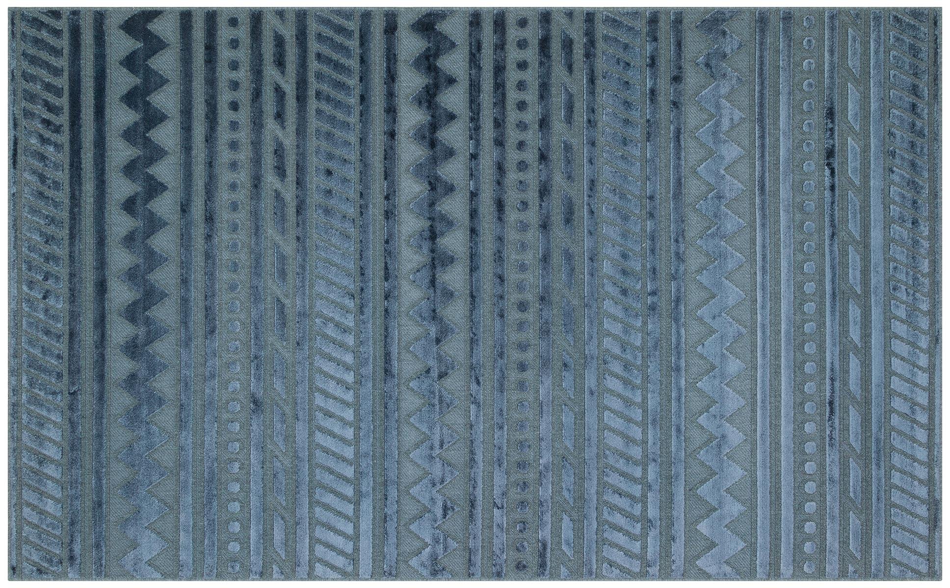 NAVY DYED YÜKSEK ALÇAK DOKULU NATUREL YÜN VE VISKON MODERN DOKUMA HALI (ZNT-06)