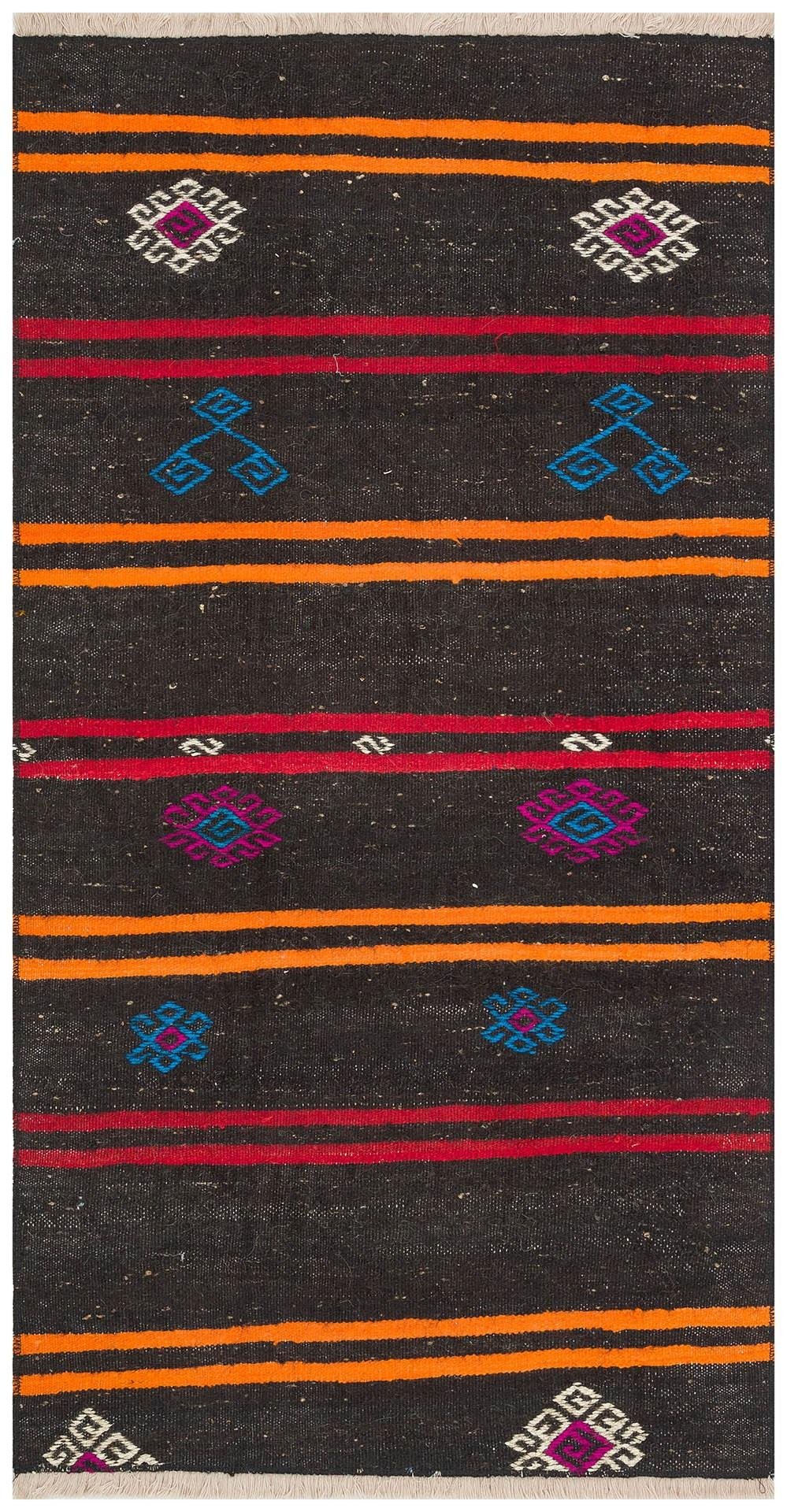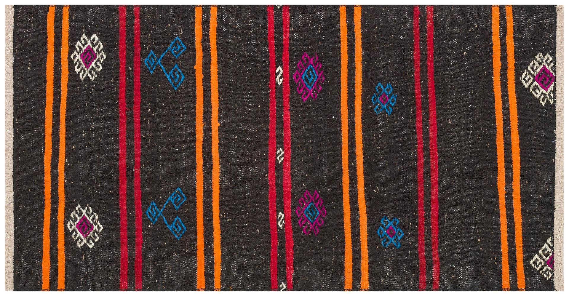 SARİ KIRMIZI RENGİ ÇİZGİLİ DESEN EL DOKUMA ANADOLU KİLİM