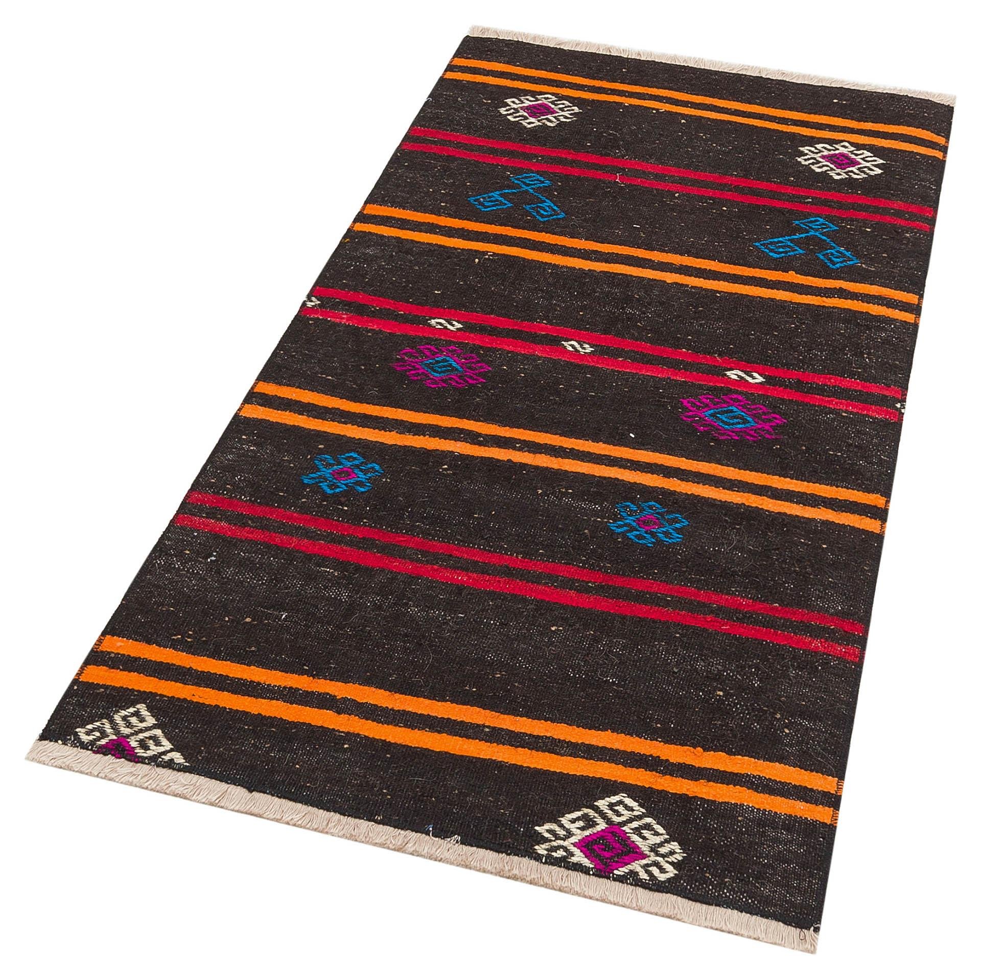 SARİ KIRMIZI RENGİ ÇİZGİLİ DESEN EL DOKUMA ANADOLU KİLİM (KL-11914)