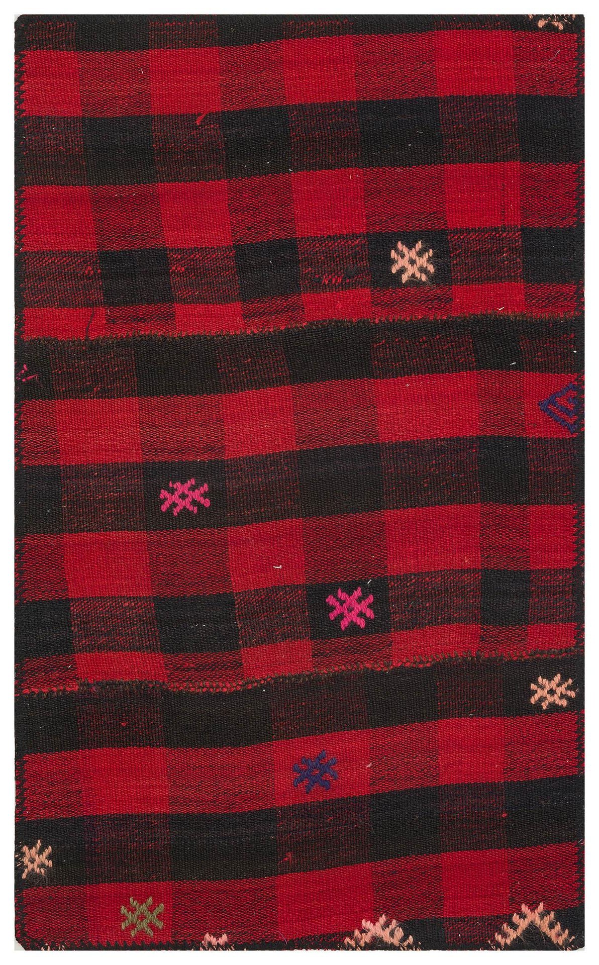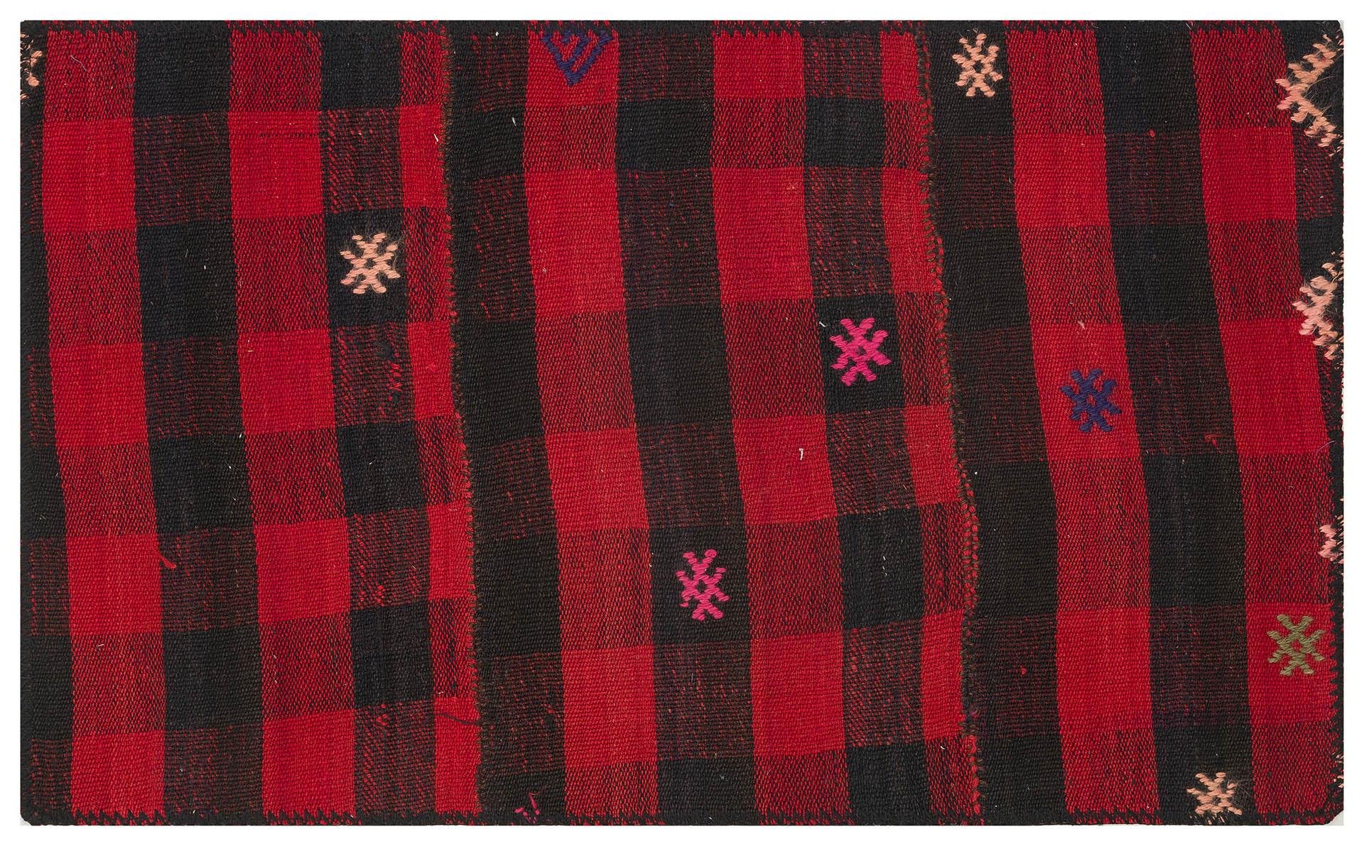 SİYAH KIRMIZI RENGİ KARELİ DESEN KİLİM PASPAS (PS-2182)