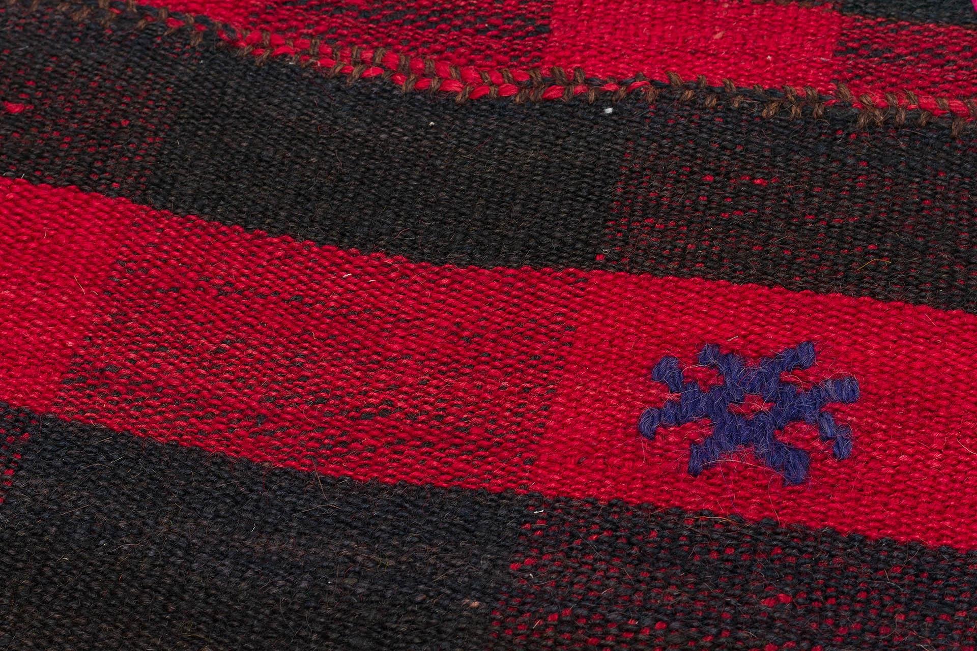 SİYAH KIRMIZI RENGİ KARELİ DESEN KİLİM PASPAS