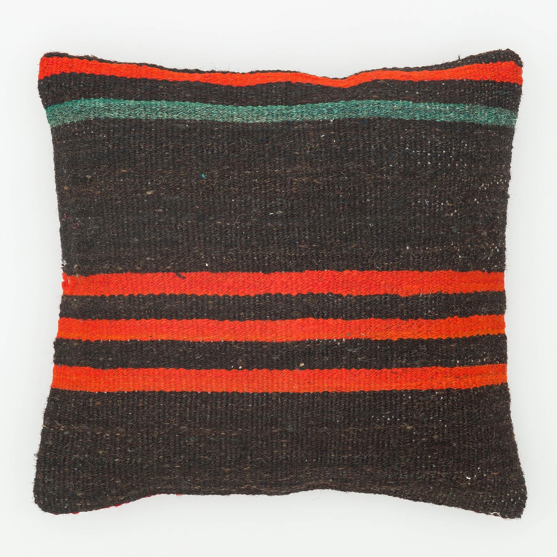 SİYAH RENK TURUNCU ÇİZGİLER VİNTAGE YASTIK KILIFI (KR-13716)