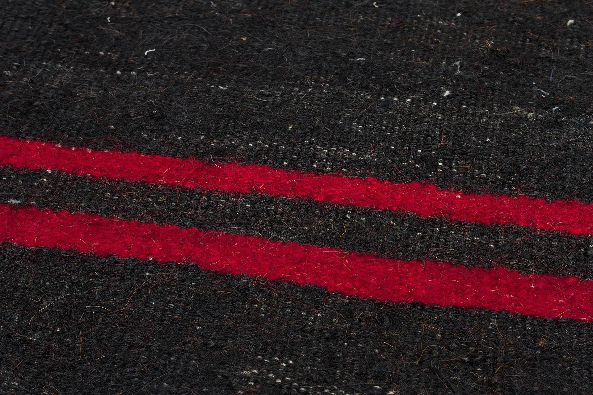 Siyah Sarı Kırımızı Çizgili El Dokuma Kilim Paspas