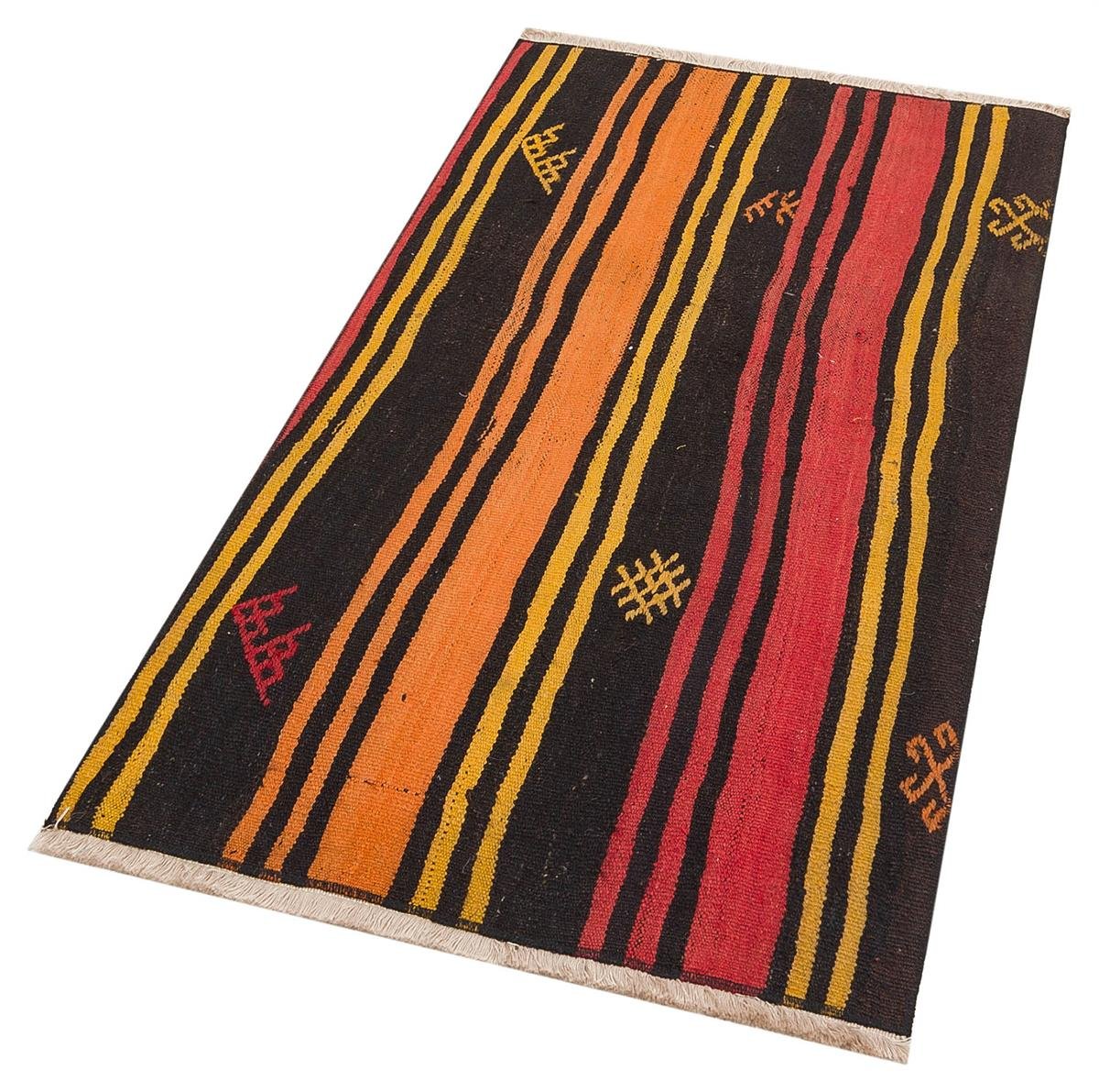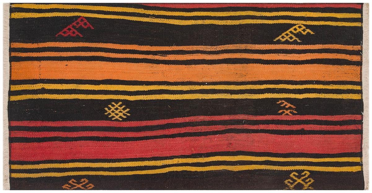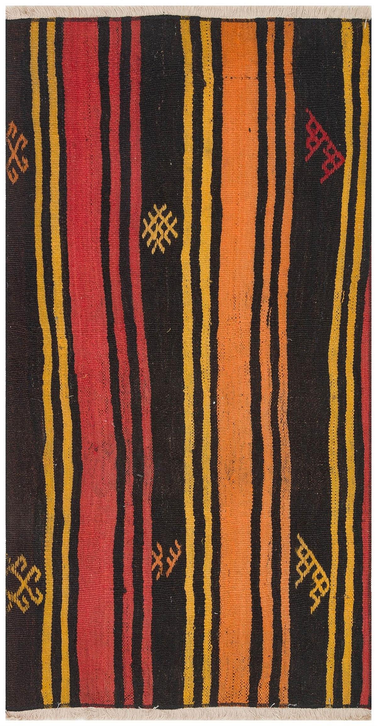 Siyah Turuncu Rengi El Dokuıma Keçi Kılı Yolluk Kilim (KL-11770)