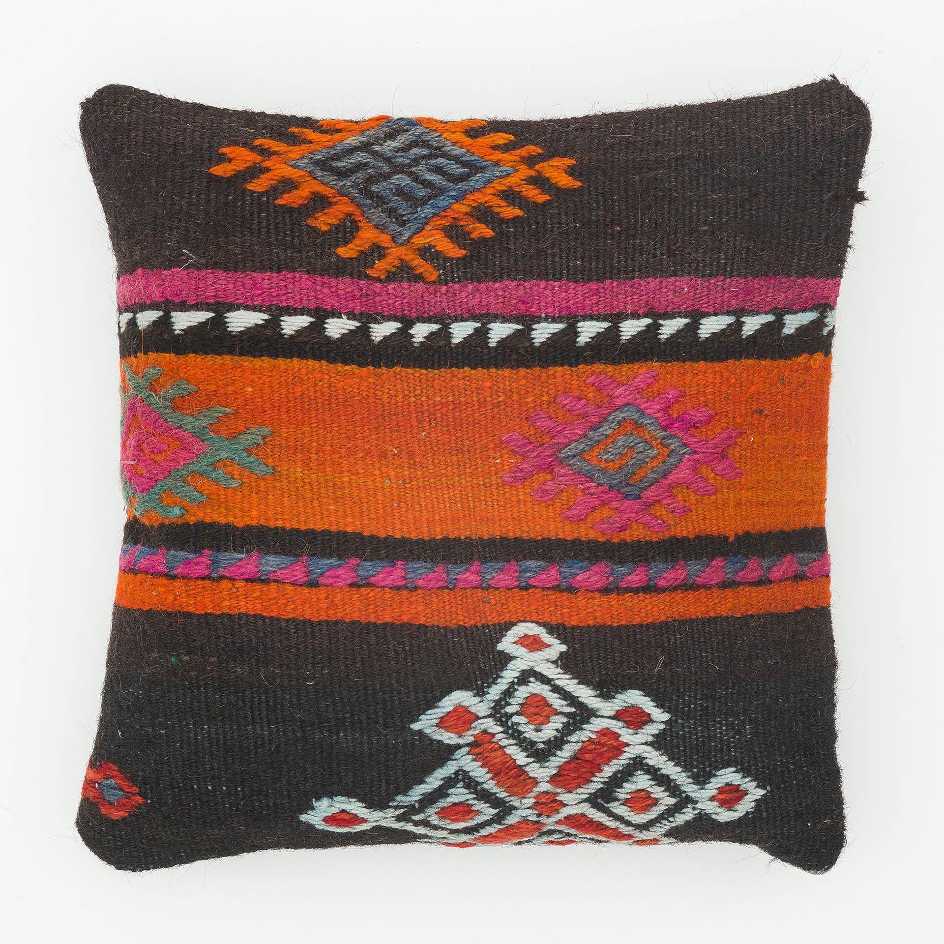 SİYAH TURUNCU RENKLİ ÇİÇEK DESENLİ YASTIK KILIFI (KR-13648)