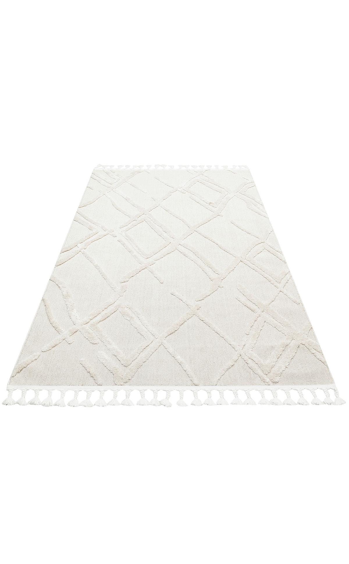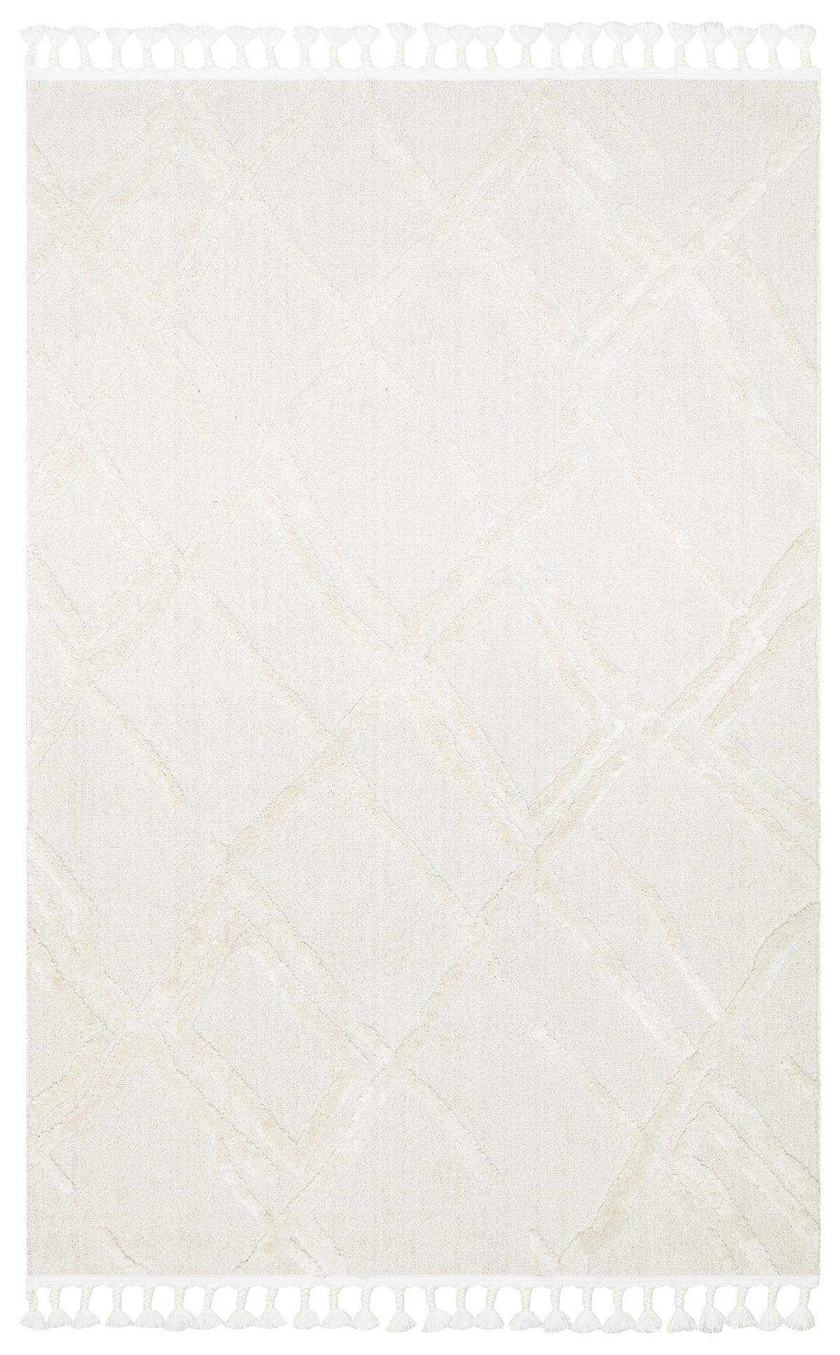 TERAZZO Hav Toz Vermez Yumuşak Dokulu Etnik Örgü Desenlere Sahip Modern İskindinav Halı (TRZ 03 WHITE)