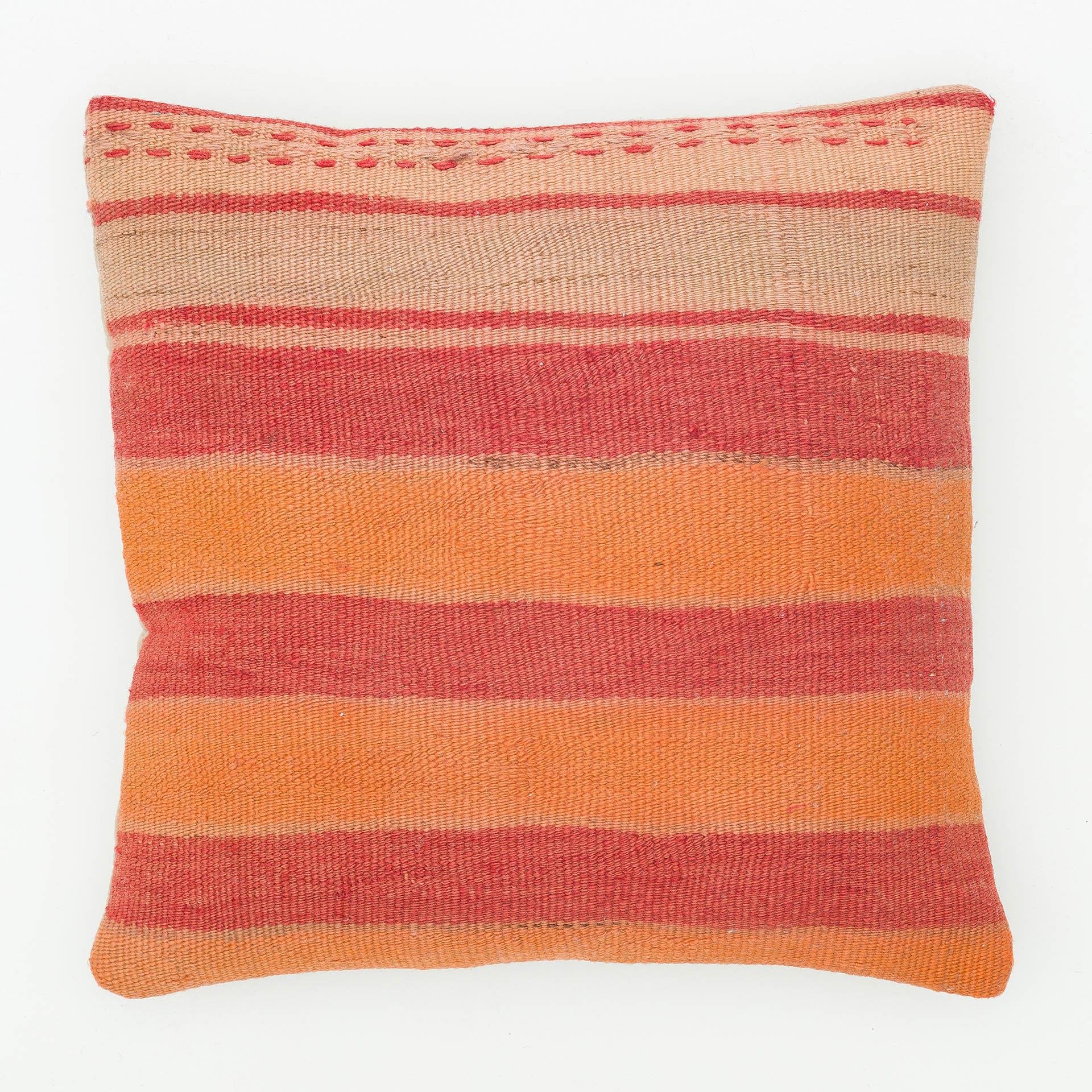 TURUNCE NAR ÇİÇEĞİ RENGİ ÇİZGİLİ DESEN EL DOKUMA KİLİM YASTAK KILIFI (KR-13571)