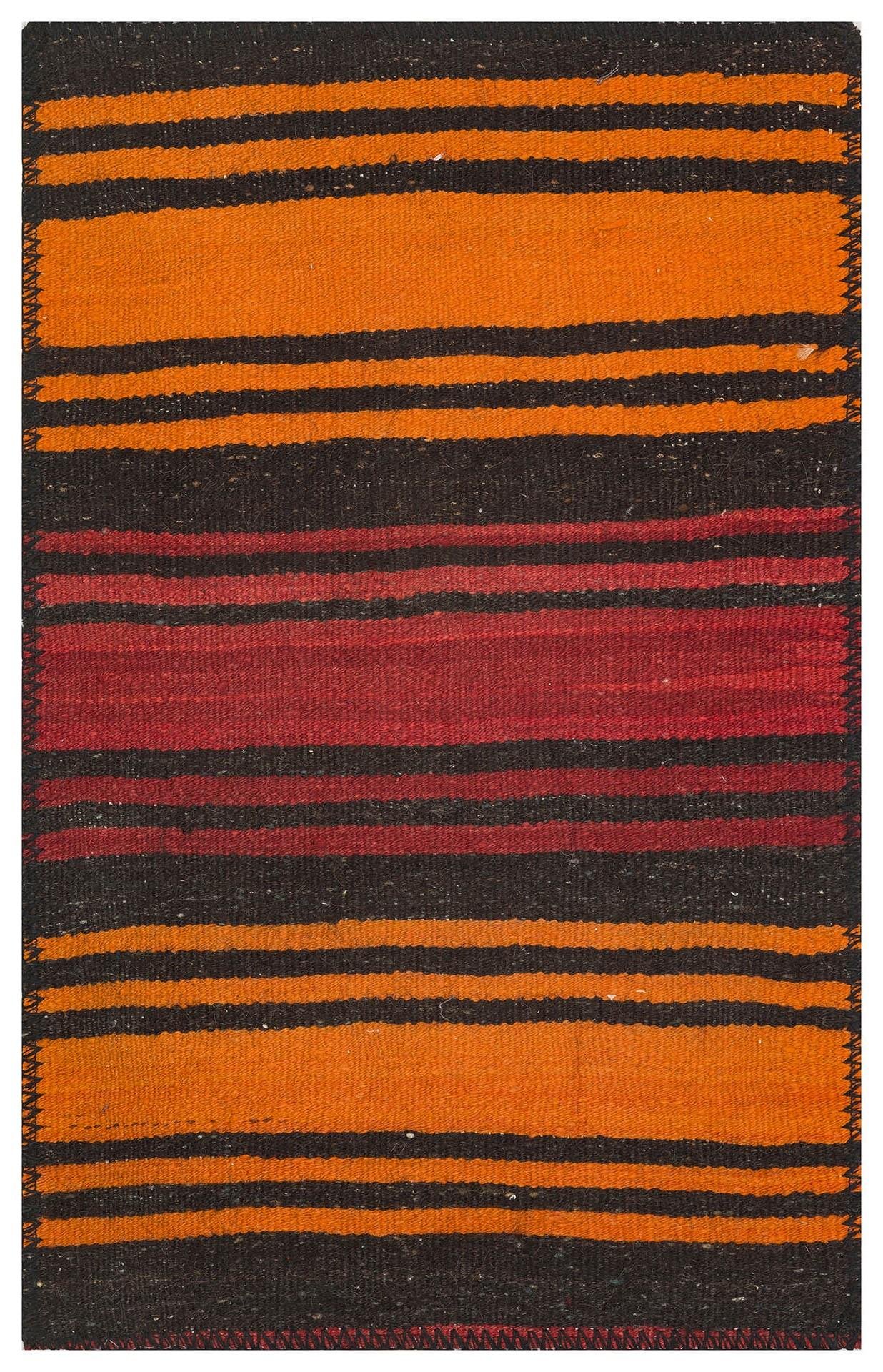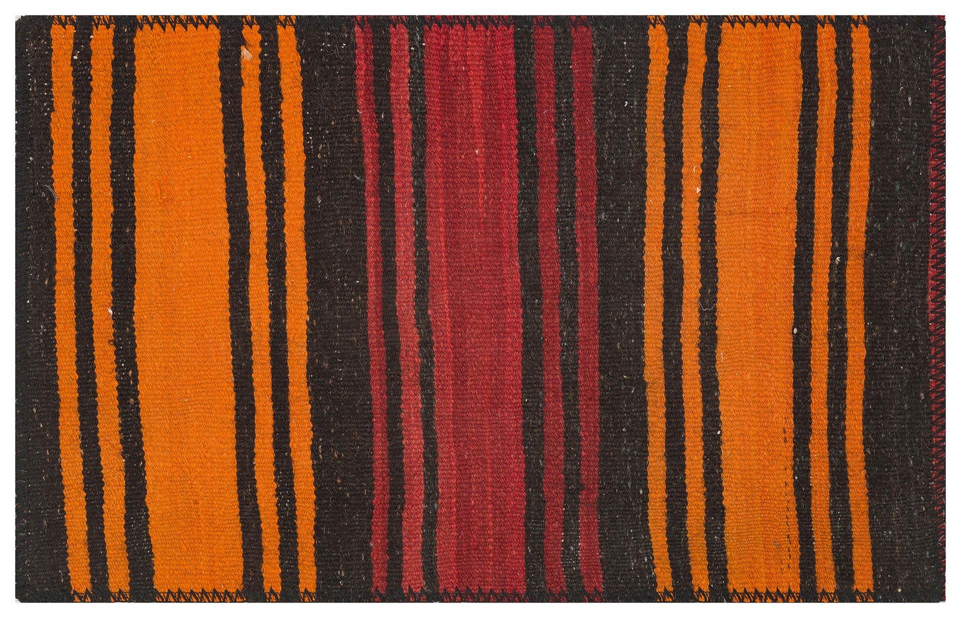 TURUNCU KIRMIZI RENGİ EL DOKUMA SİYAH KEÇİ KILI KİLİM YÜNLÜ PASPAS (PS-2107)