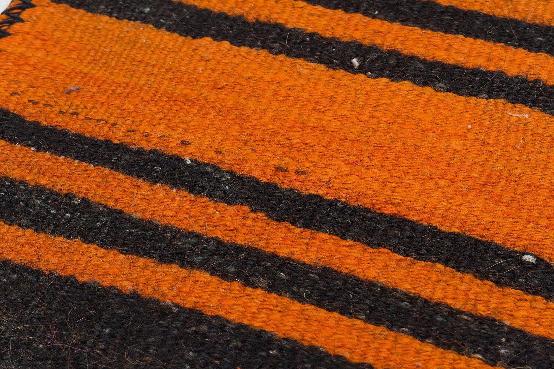 TURUNCU KIRMIZI RENGİ EL DOKUMA SİYAH KEÇİ KILI KİLİM YÜNLÜ PASPAS