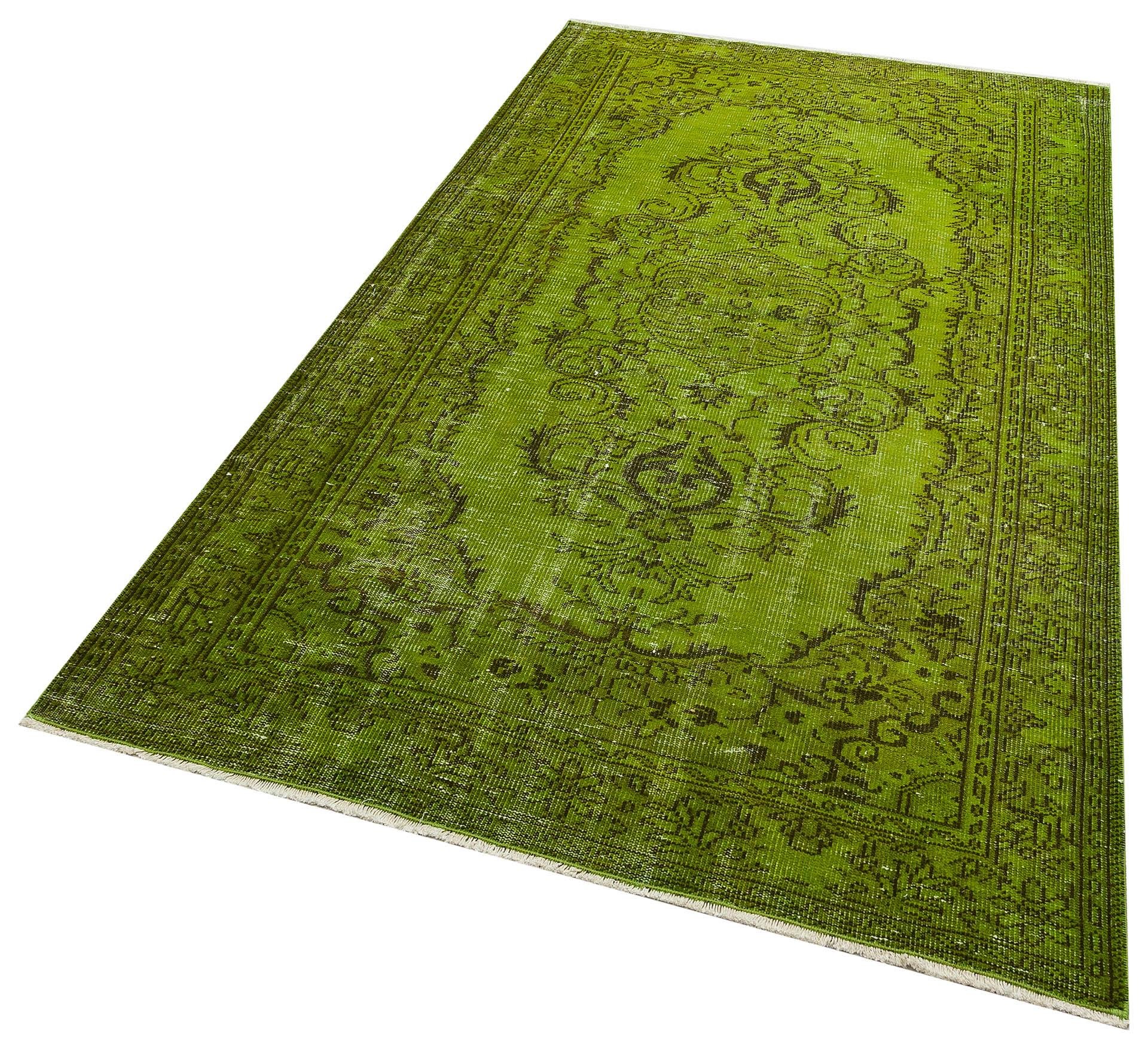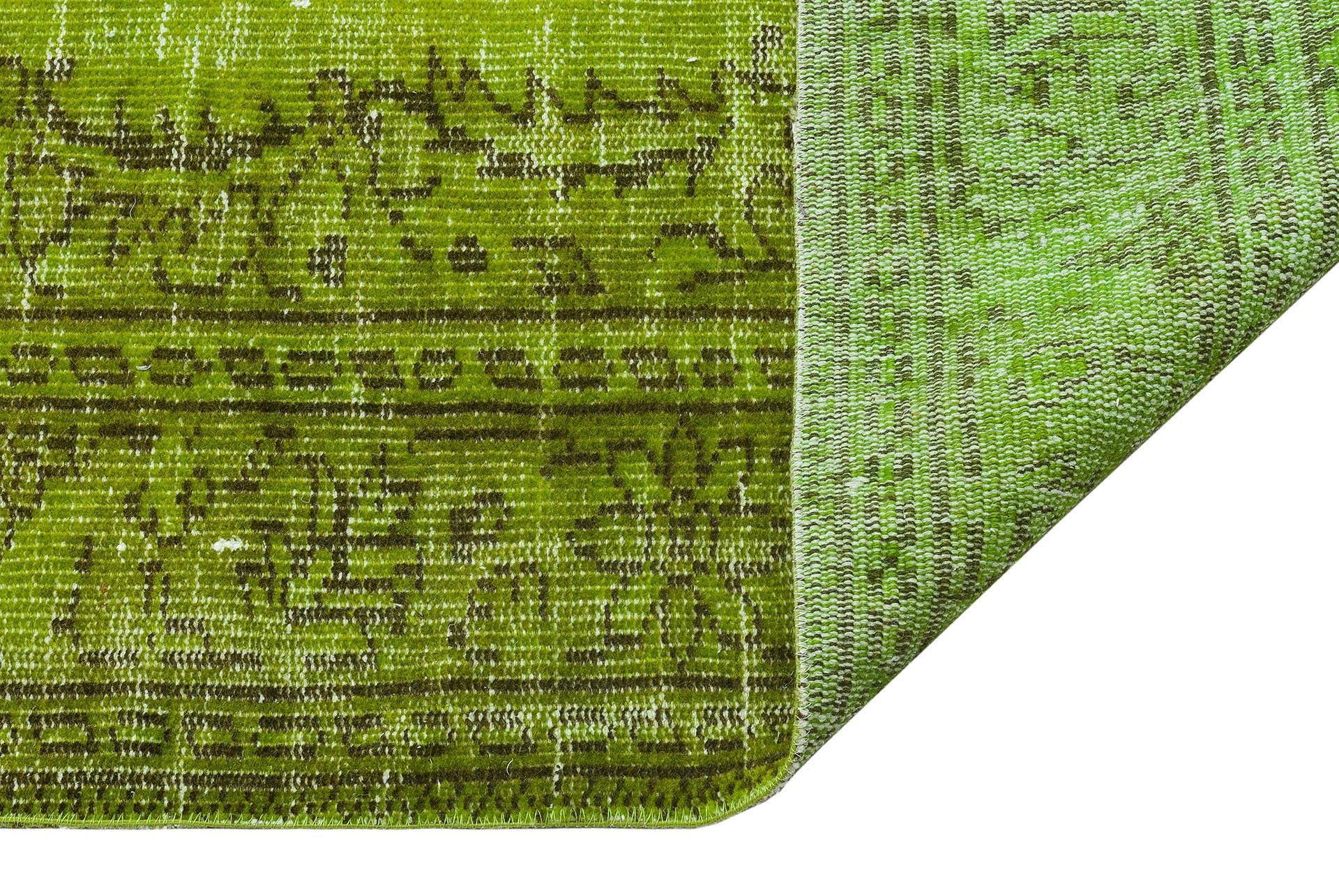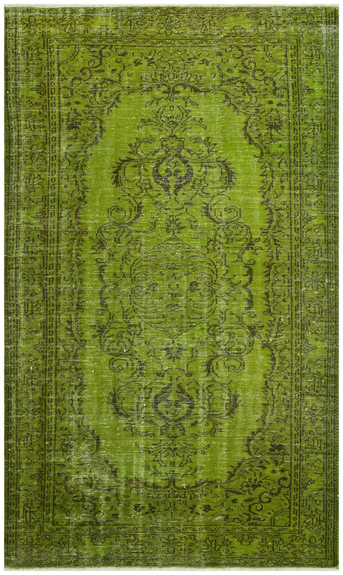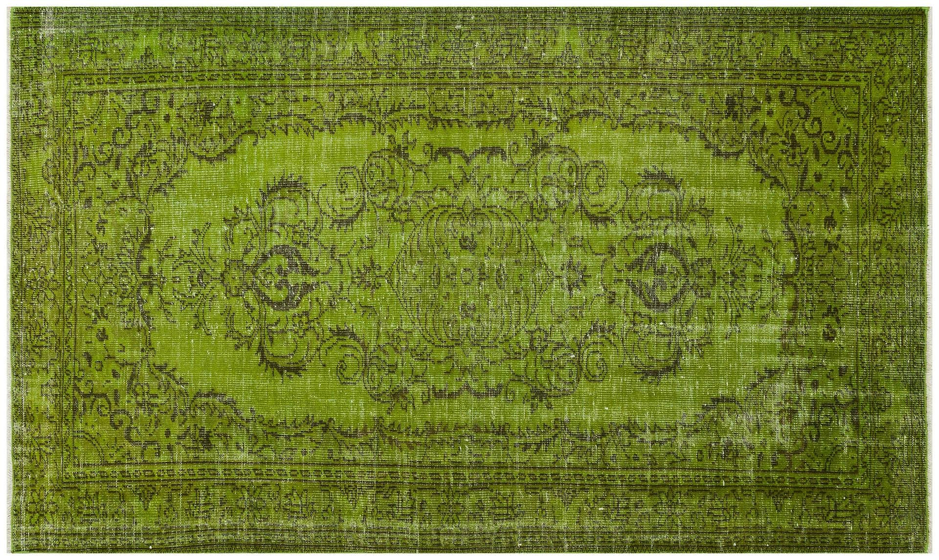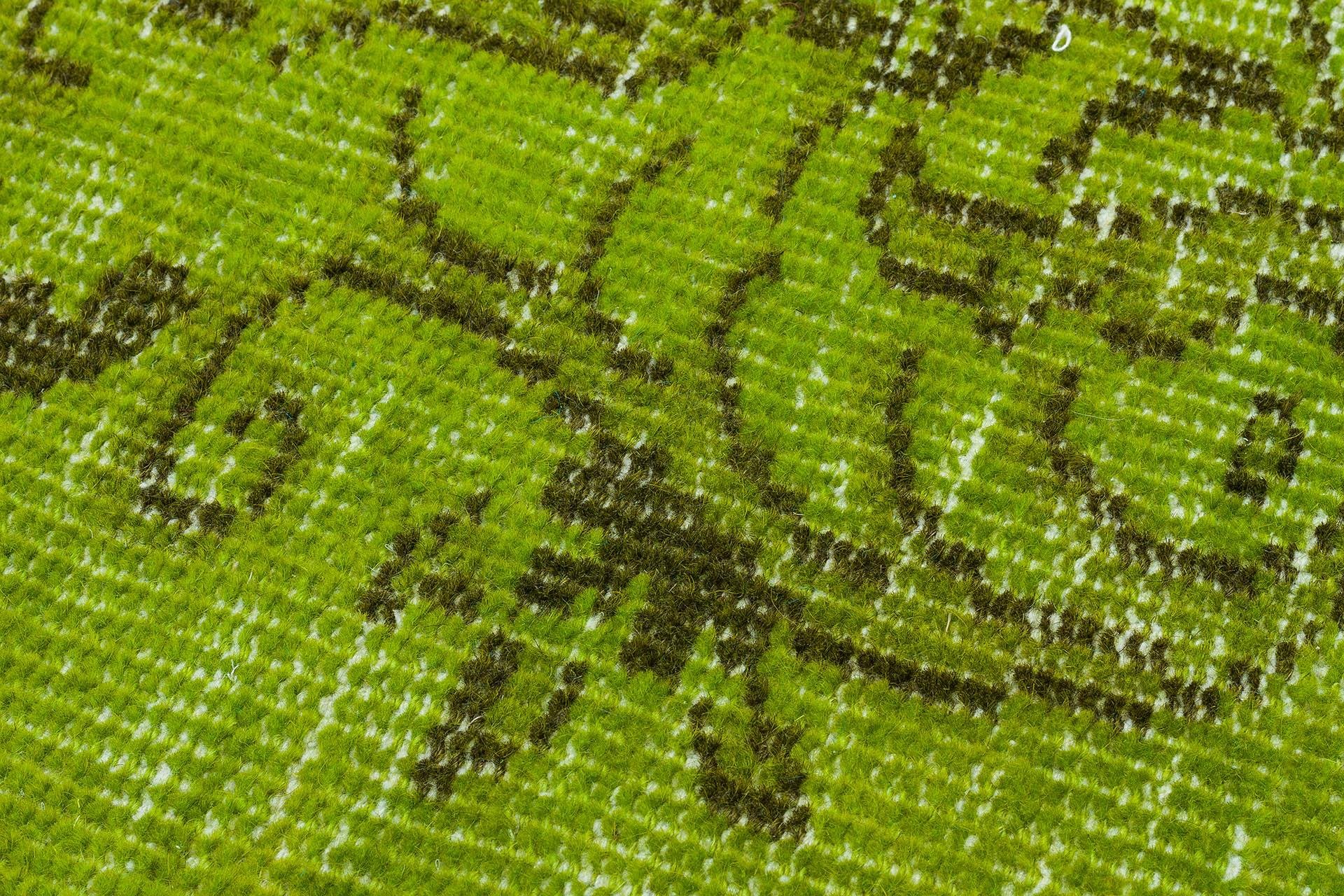 EŞSİZ EL DOKUMA FİSTİK YEŞİL SİYAH GÖBEKLİ DESEN YÜN VİNTAGE HALISI (VN - 13160)