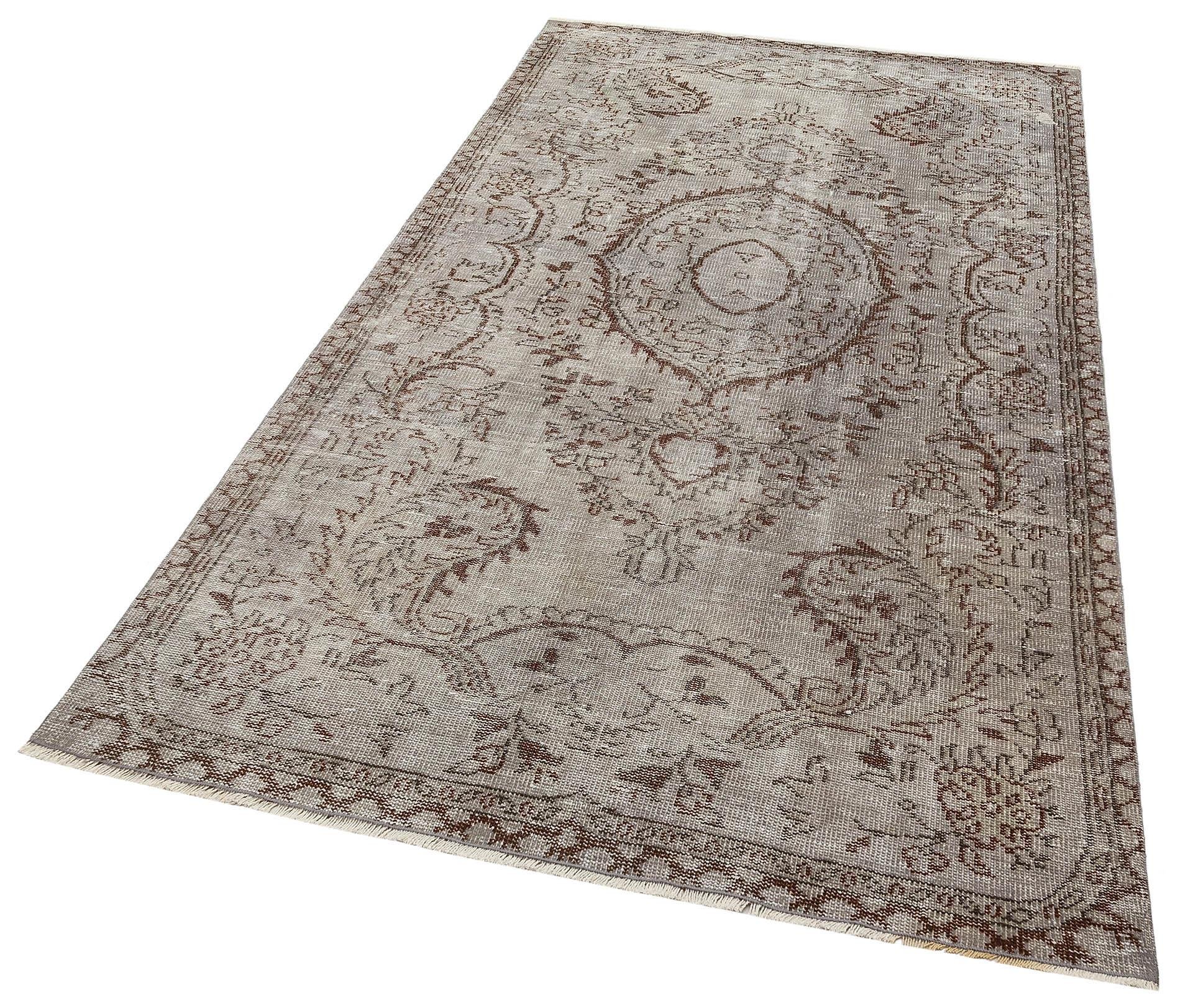 EŞSİZ EL DOKUMA GRİ KAHVERENGİ GÖBEKLİ DESEN ESKİTME VİNTAGE HALI (VN - 13139)