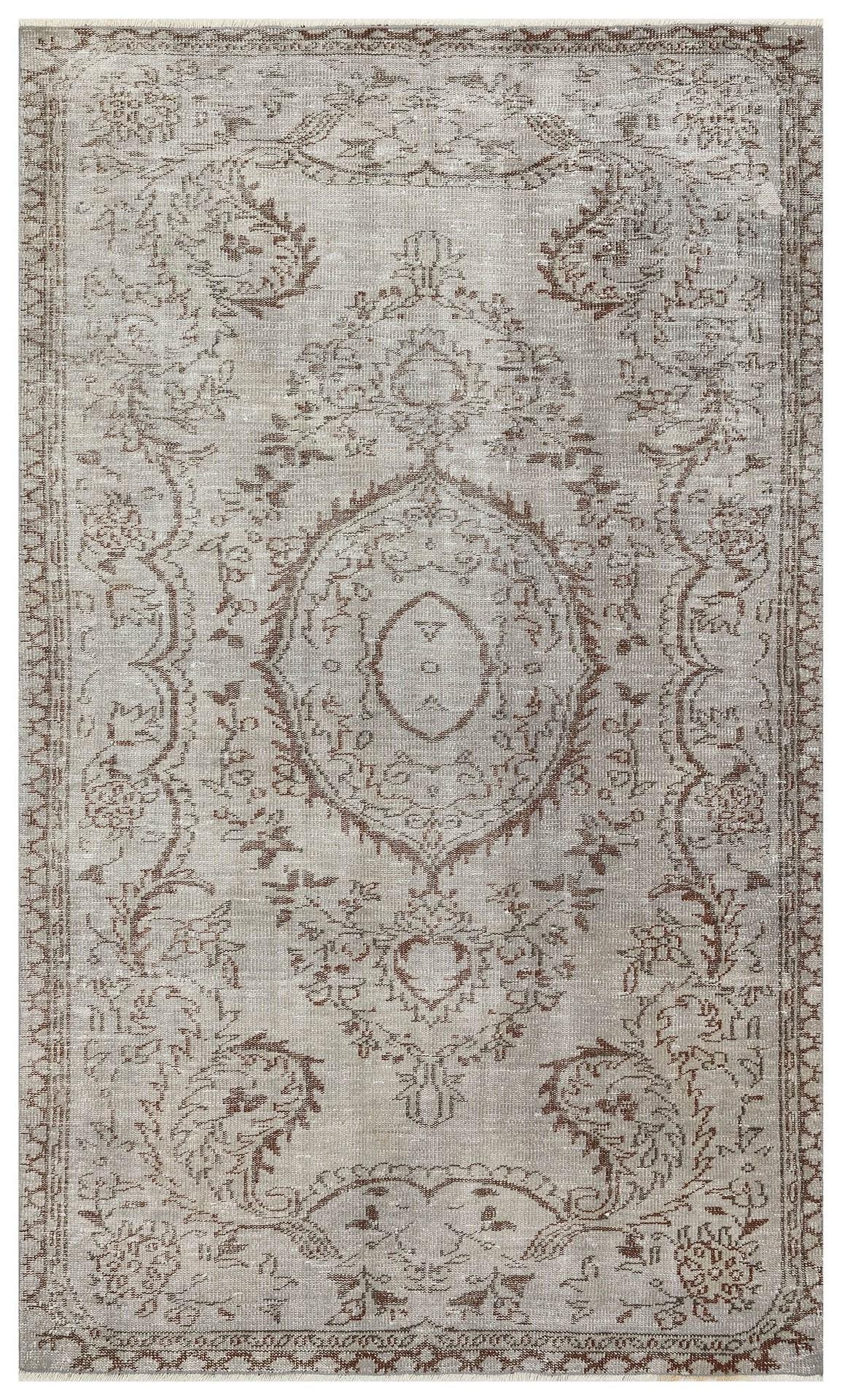 EŞSİZ EL DOKUMA GRİ KAHVERENGİ GÖBEKLİ DESEN ESKİTME VİNTAGE HALI