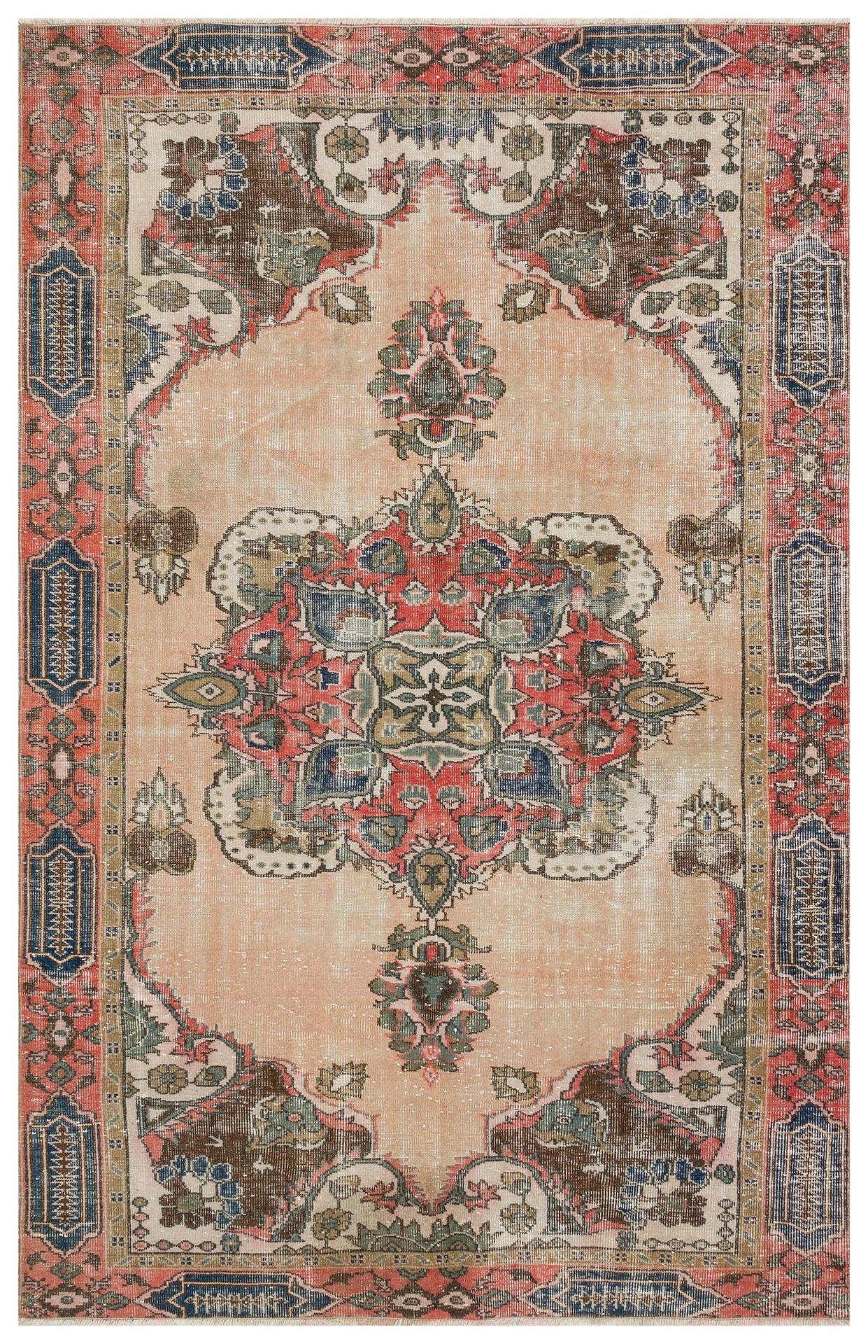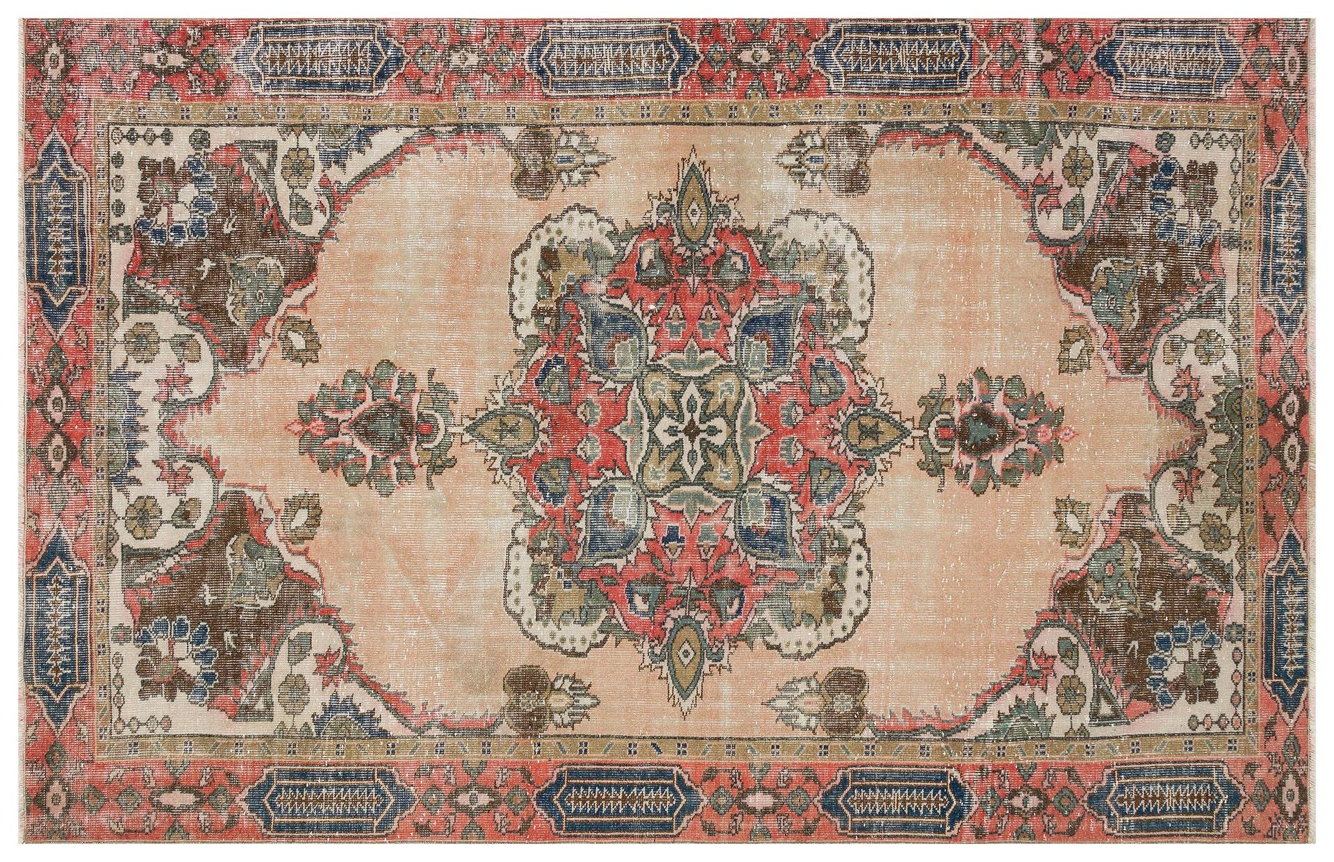 EŞSİZ EL DOKUMA NATUREL RENGİ GÖBEKLİ DESEN SALON VİNTAGE HALISI (VN - 11494)
