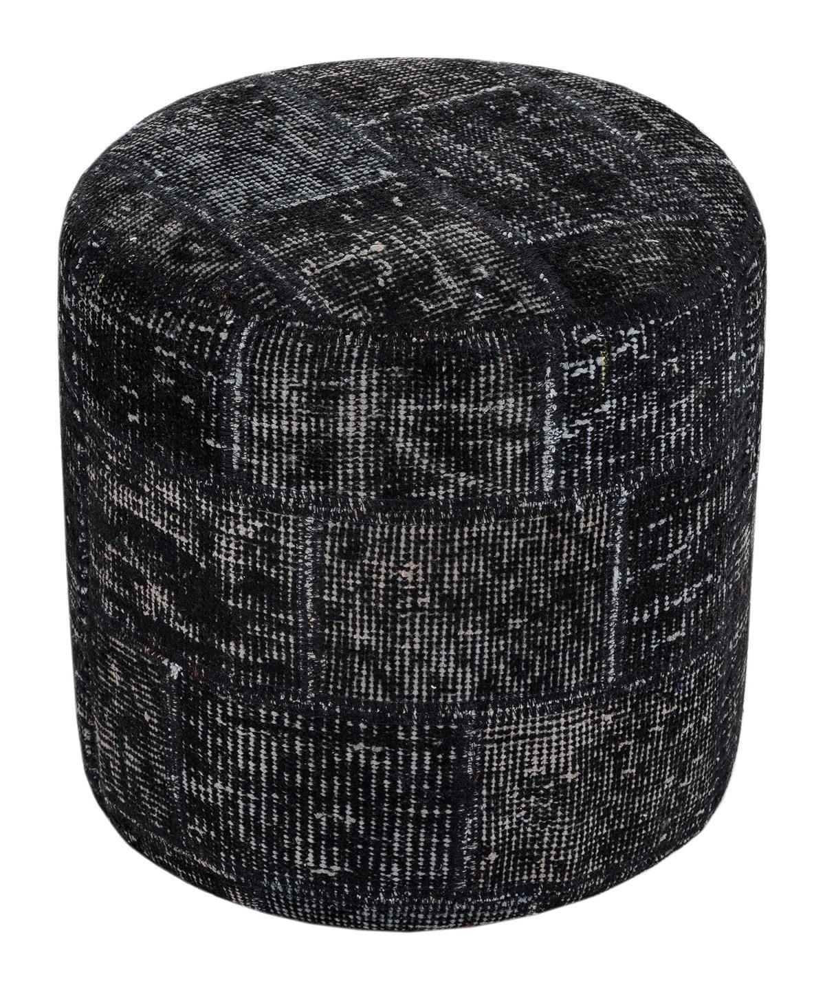 EŞSİZ EL DOKUMA SİYAH RENGİ PATCHWORK YUVARLAK PUF (PF-6096)