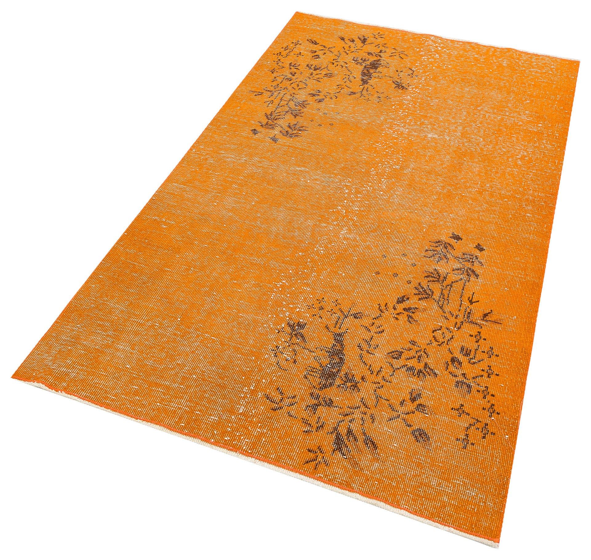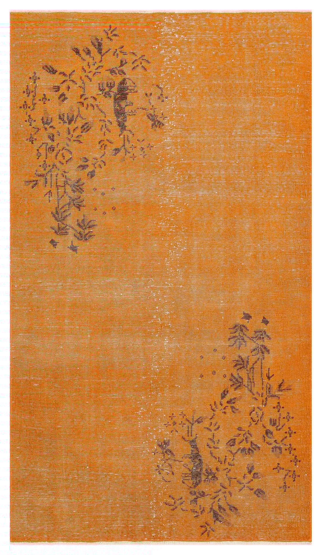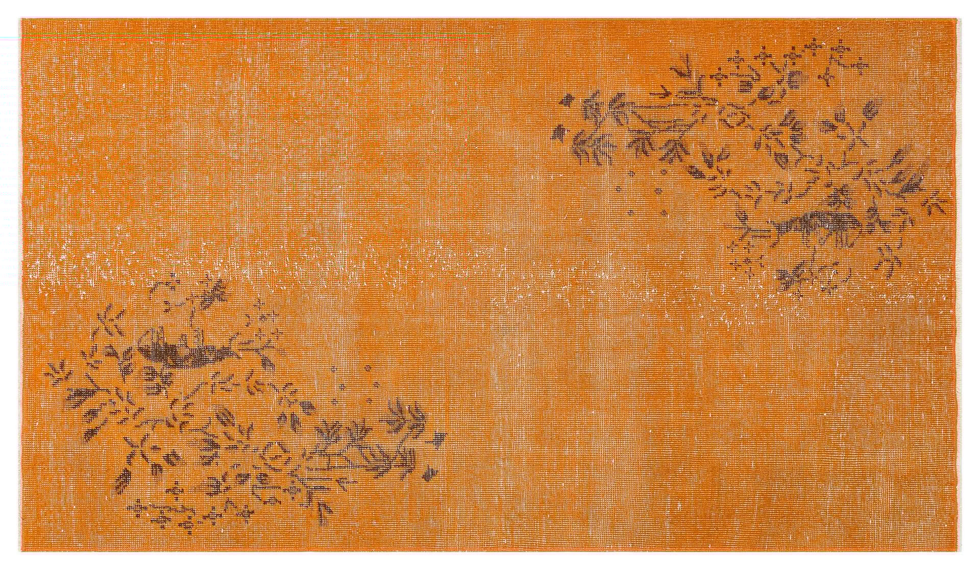 EŞSİZ EL DOKUMA TURUNCU RENGİ ÇİÇEKLİ DESEN VİNTAGE HALISI