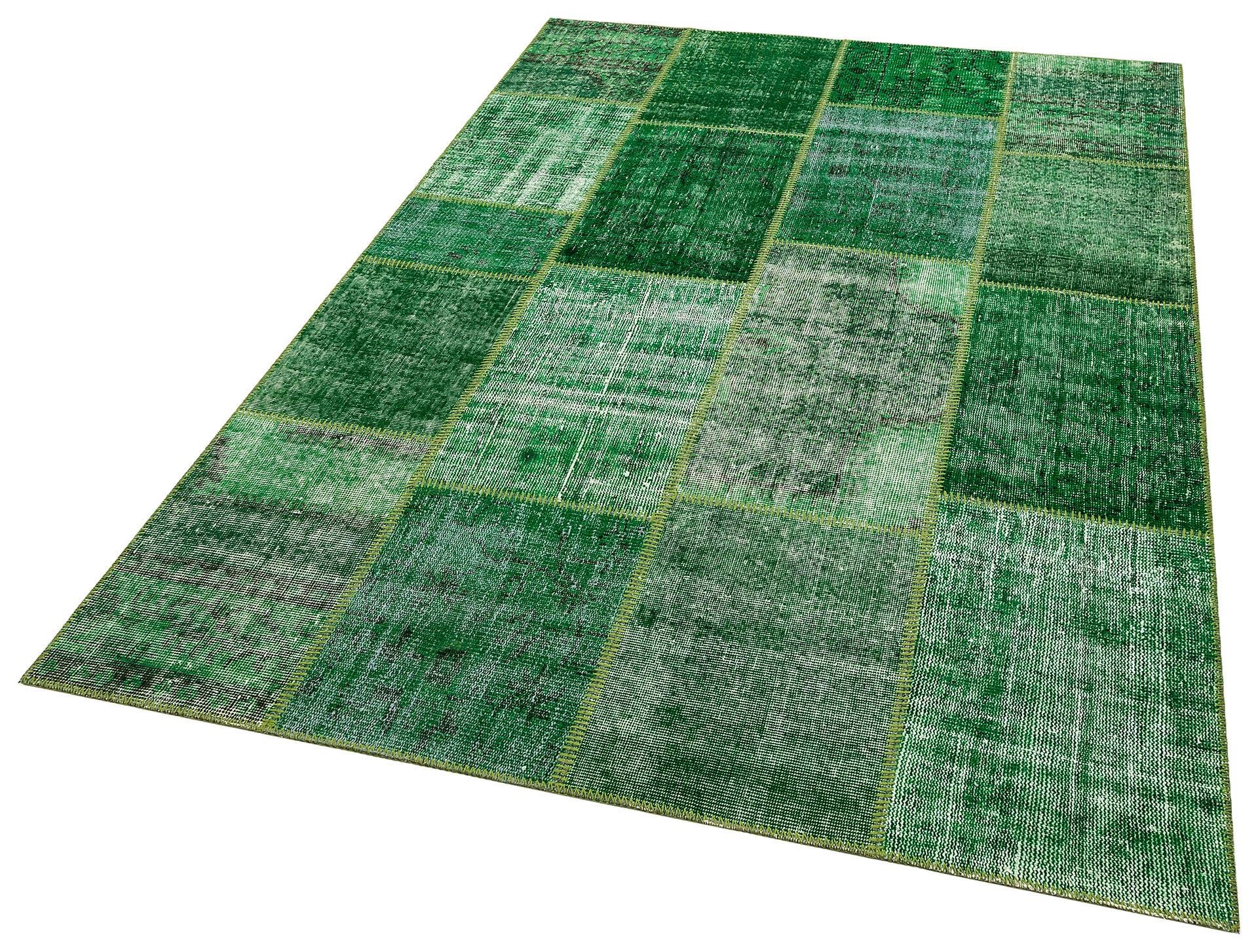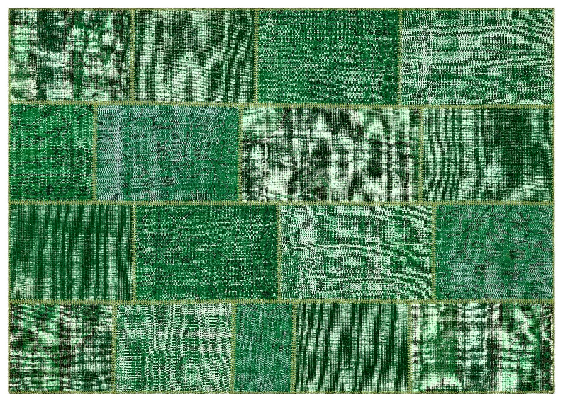 Geneleksel El Dokuma Çim Yeşil Rengi Patchwork Halı (PW-1053)