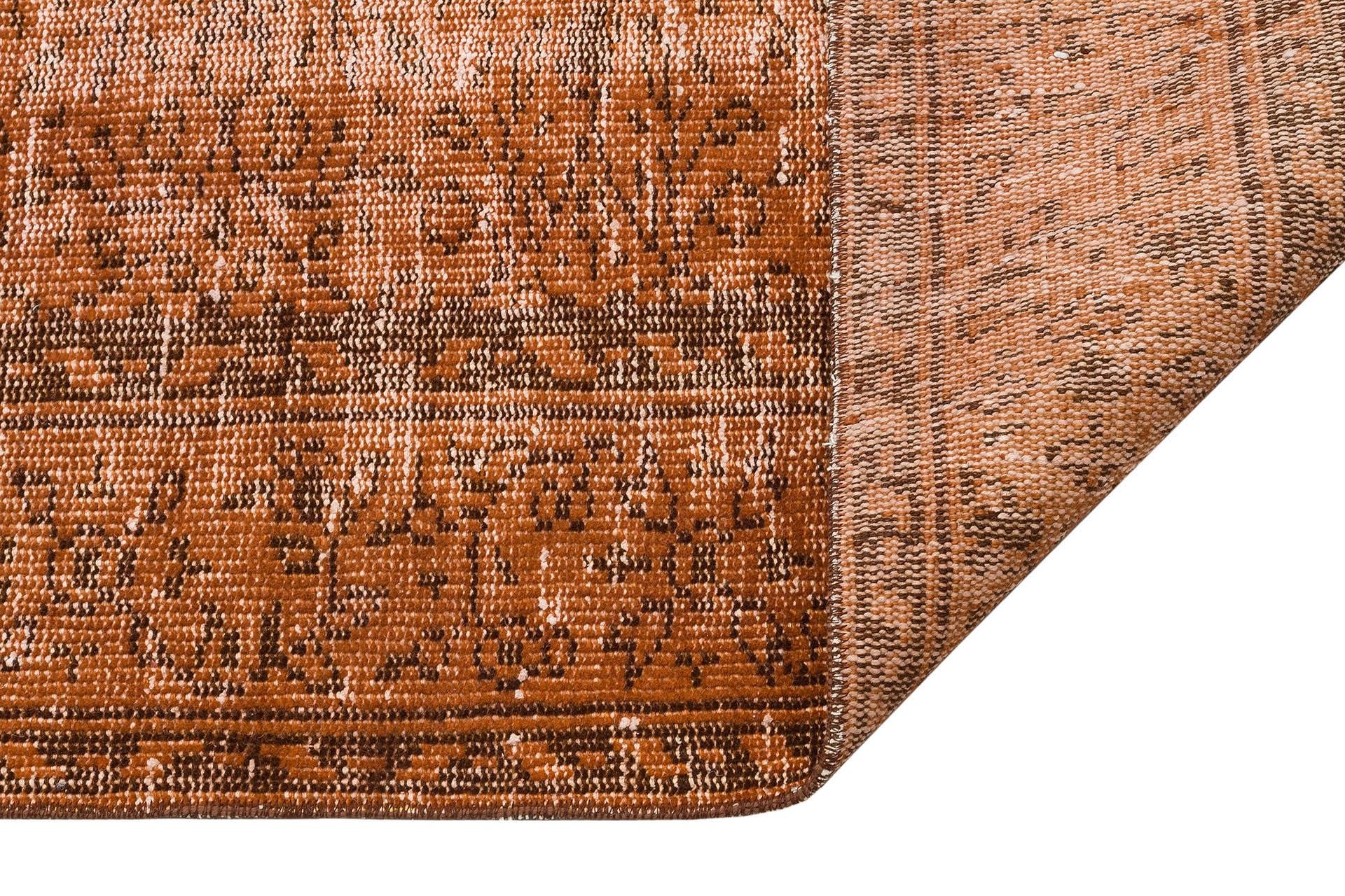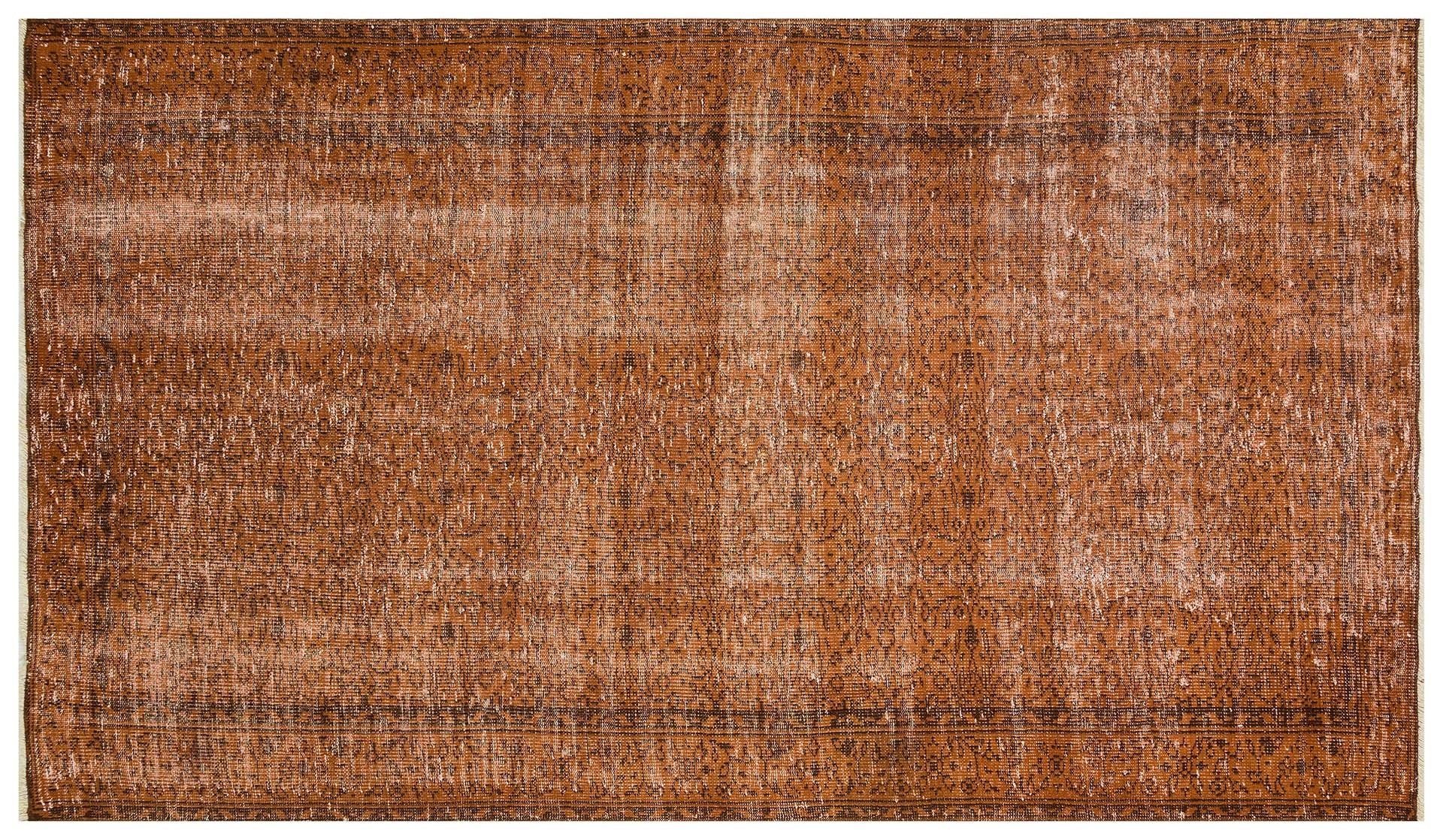 GENELEKSEL EL YAPIMI KAHVERENGİ ÇİÇEKLİ DESEN ESKİTME VİNTAGE HALISI (VN-14011)