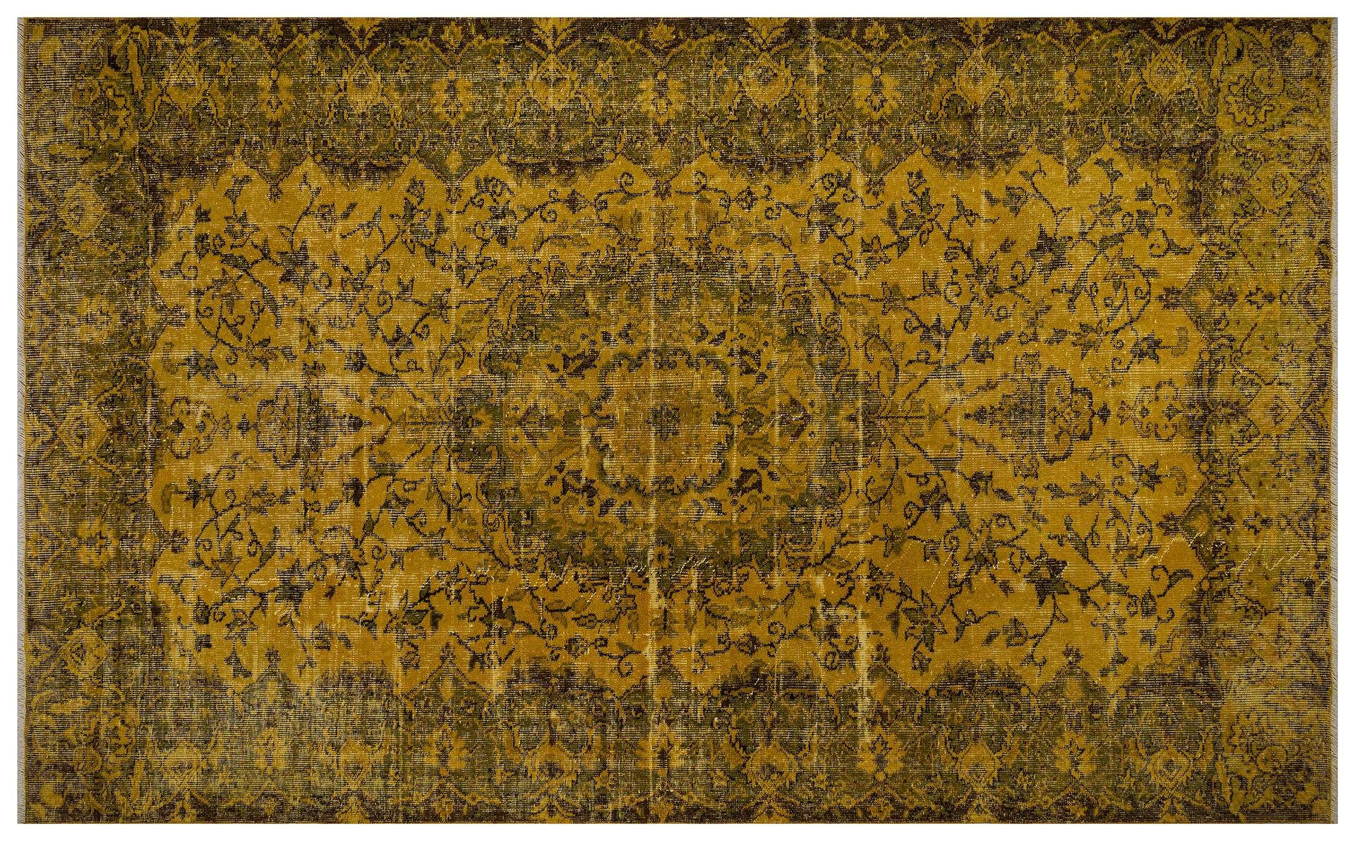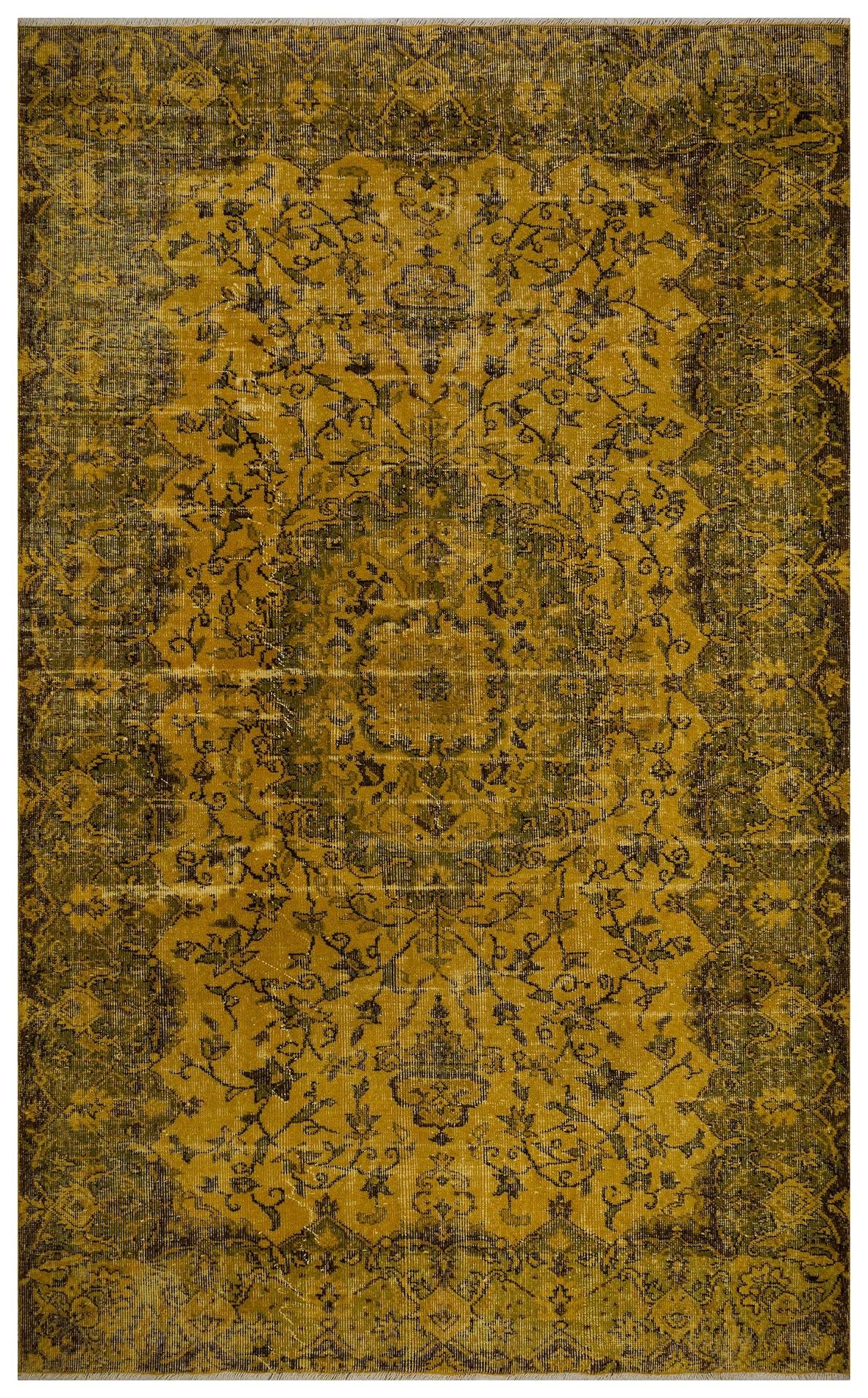 GERÇEK EL DOKUMA HARDAL KAHVERENGİ GÖBEKLİ DESEN VİNTAGE HALISI (VN - 1709)