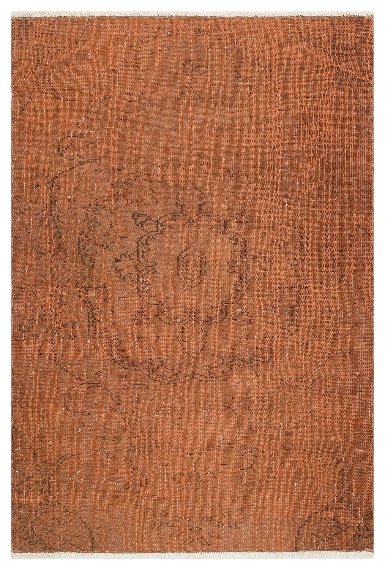 GERÇEK EL DOKUMA KAHVERENGİ GÖBEKLİ DESEN VİNTAGE HALISI (VN-11245)