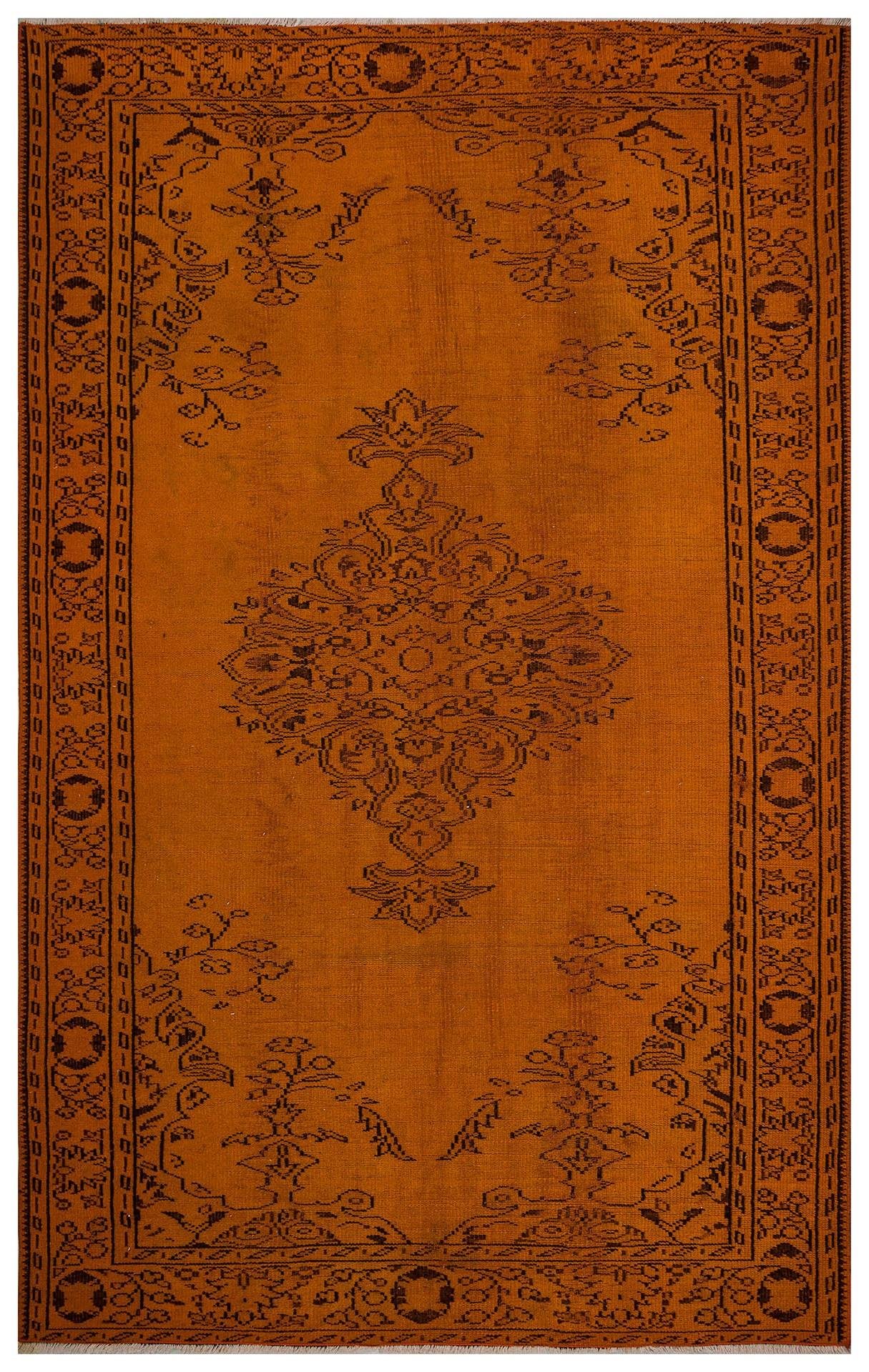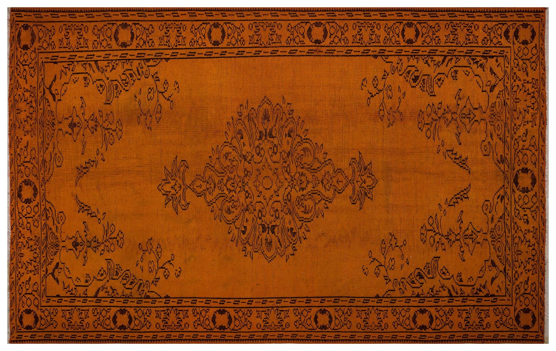 GERÇEK EL DOKUMA SİYAH GÖBEKLİ KOY BAKİR RENGİ VİNTAGE HALISI (VN - 1713)
